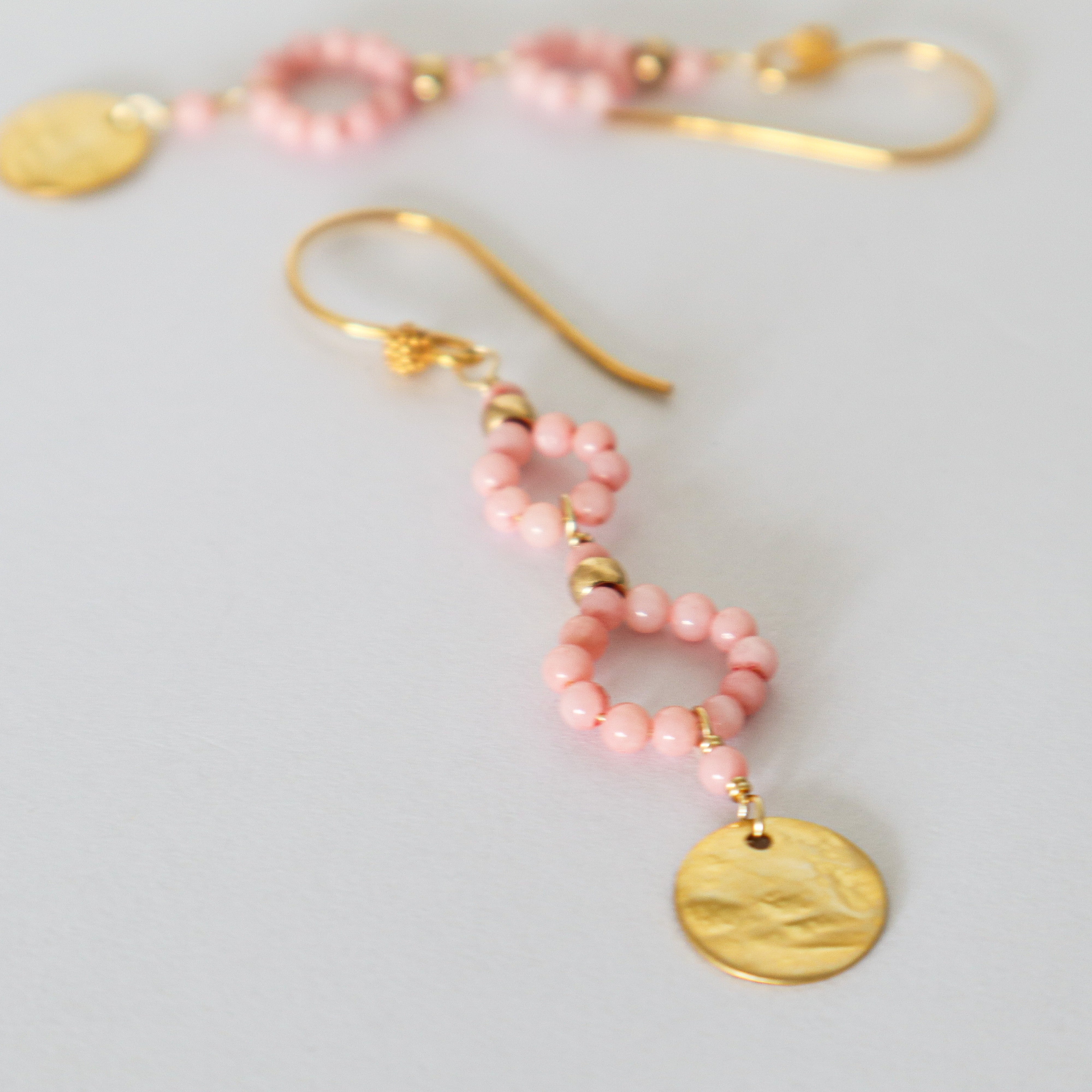 Transport yourself to faraway shores with the Astrid Earrings, a vibrant pair featuring cheerful coral beads and gold drops.