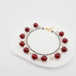 The Callie Bracelet brings richness and movement to your wrist with alternating burgundy shell pearls and luminous white crystal pearls, all set against a dark chain that adds a subtle edge.