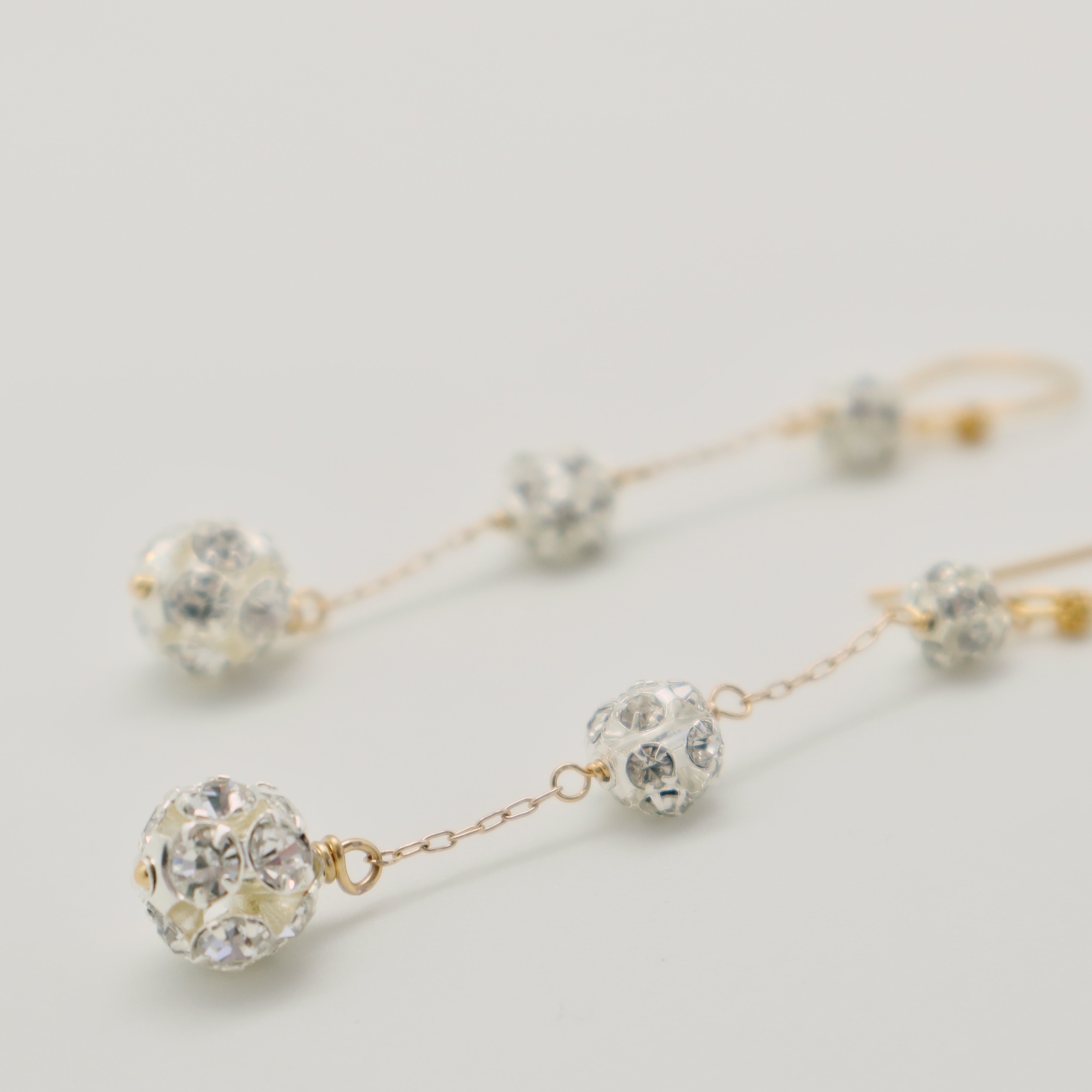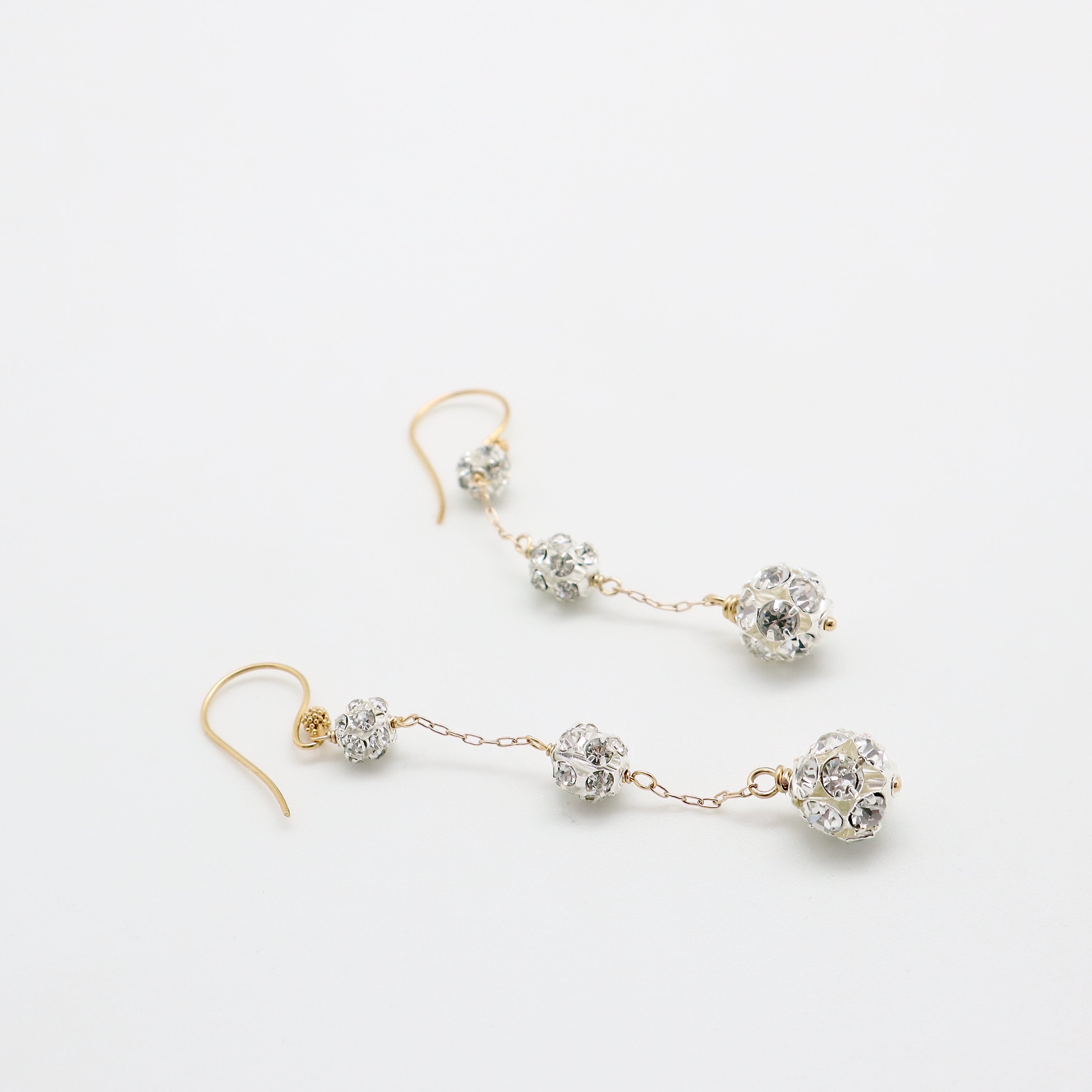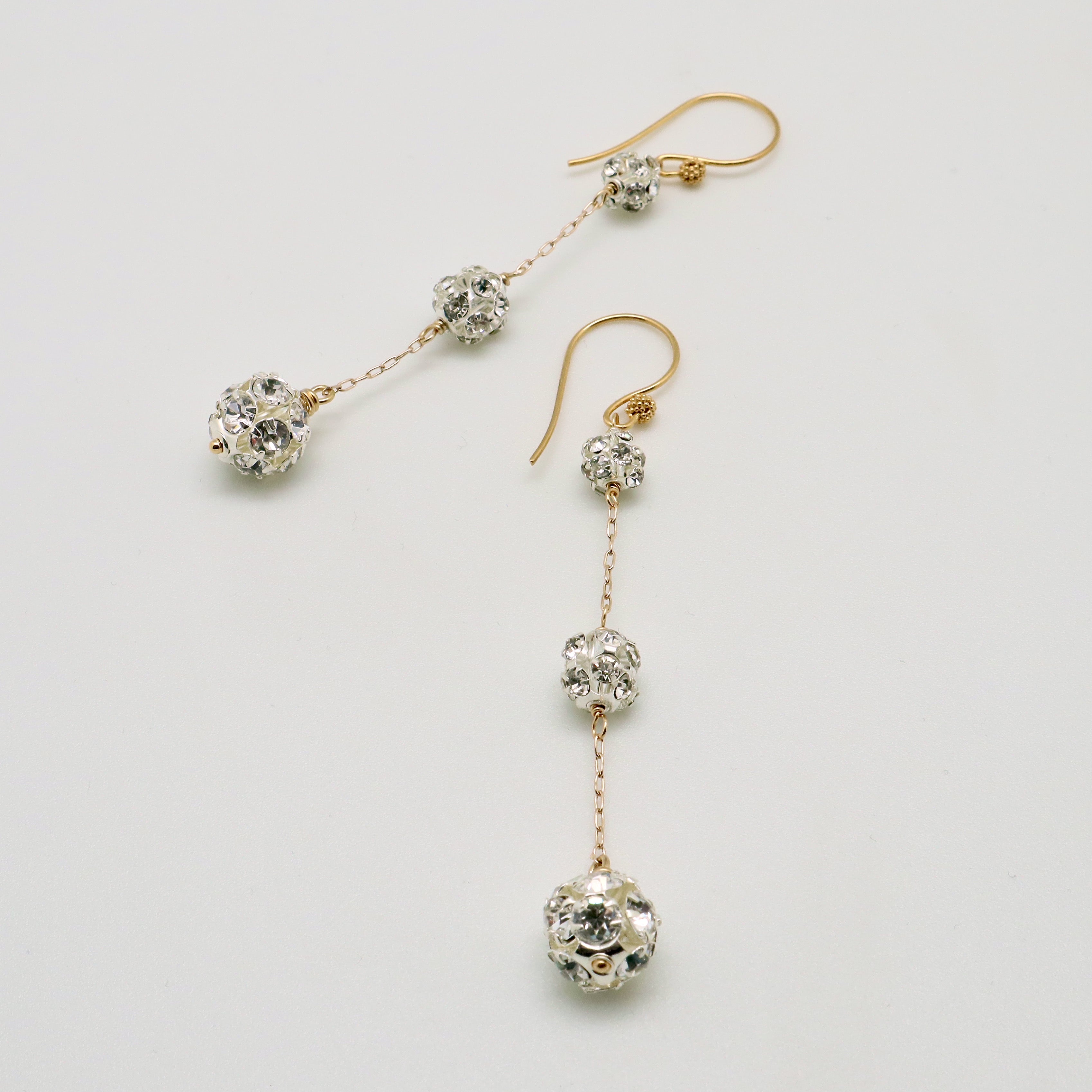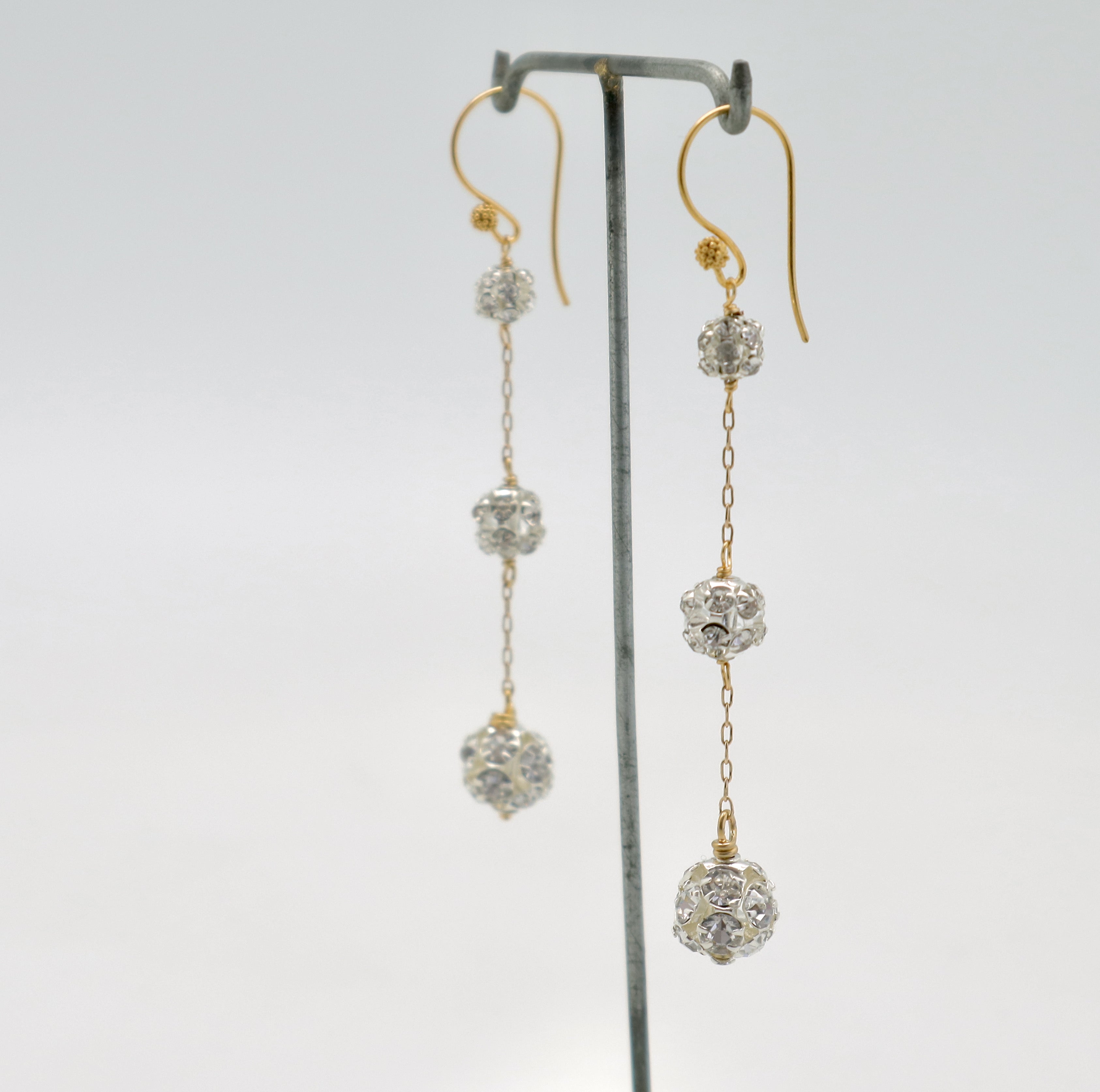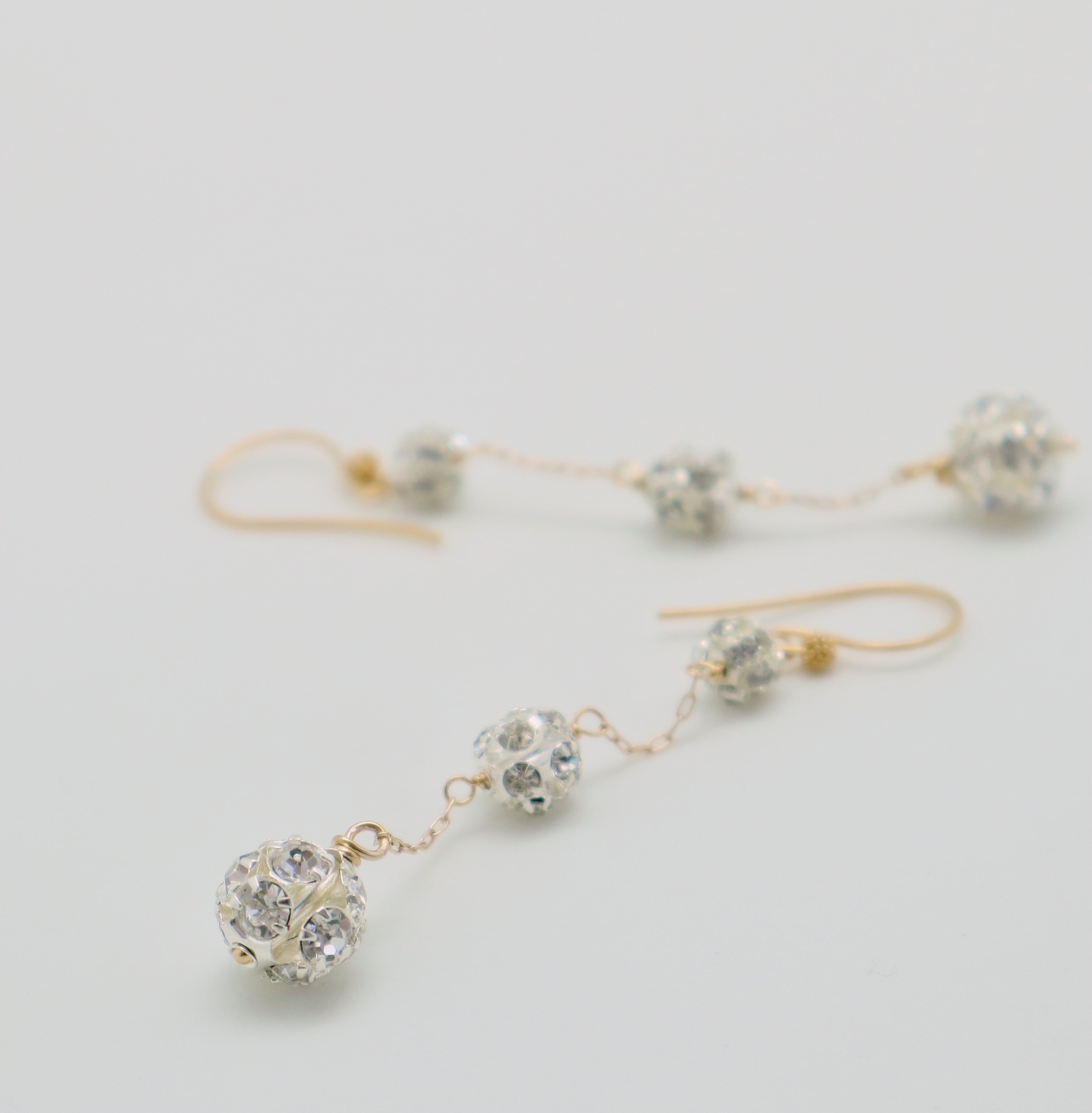 These playful, gold-filled chain earrings feature rhinestone-studded disco balls for a dazzling look.