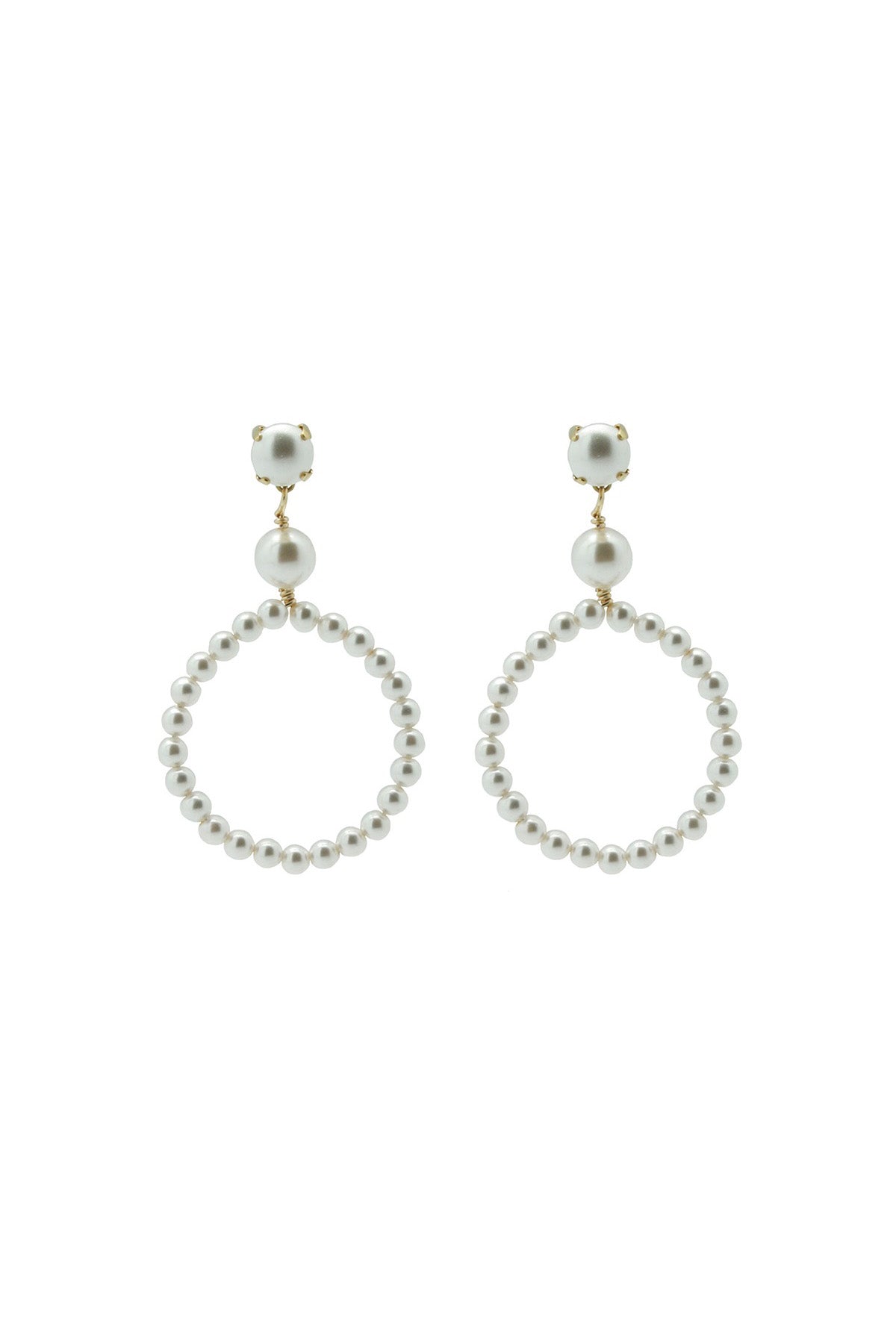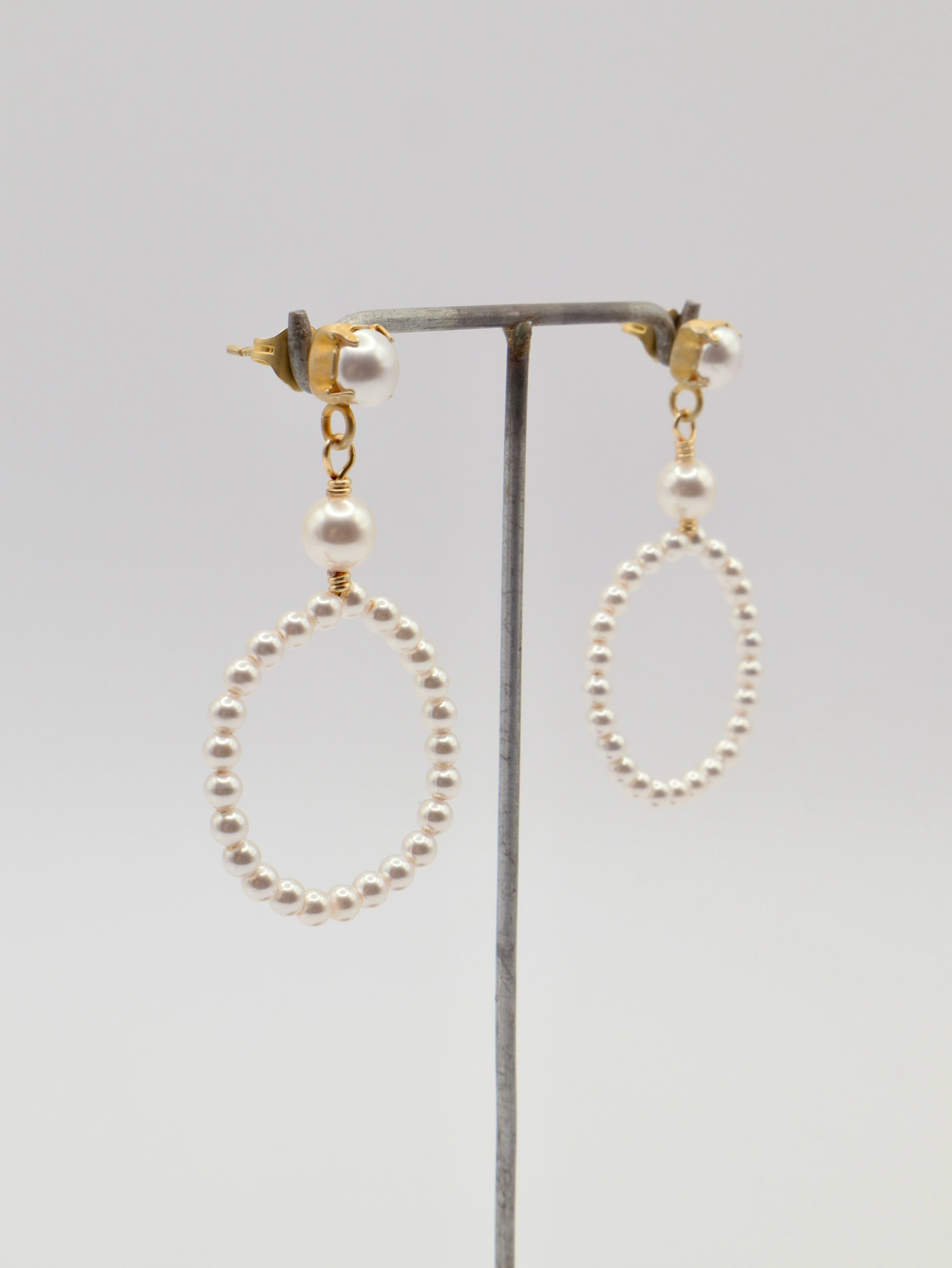 Swarovski crystal pearl beaded hoop earrings on post fitting.