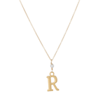 "R" Initial Charm Necklace with Pearl