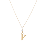 Matte gold plated "V" initial charm necklace. It is suspended on a Swarovski crystal pearl from our classic gold filled chain and closes with a mini toggle clasp surrounded by two little pearls.