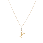 Matte gold plated "Y" initial charm necklace. It is suspended on a Swarovski crystal pearl from our classic gold filled chain and closes with a mini toggle clasp surrounded by two little pearls.