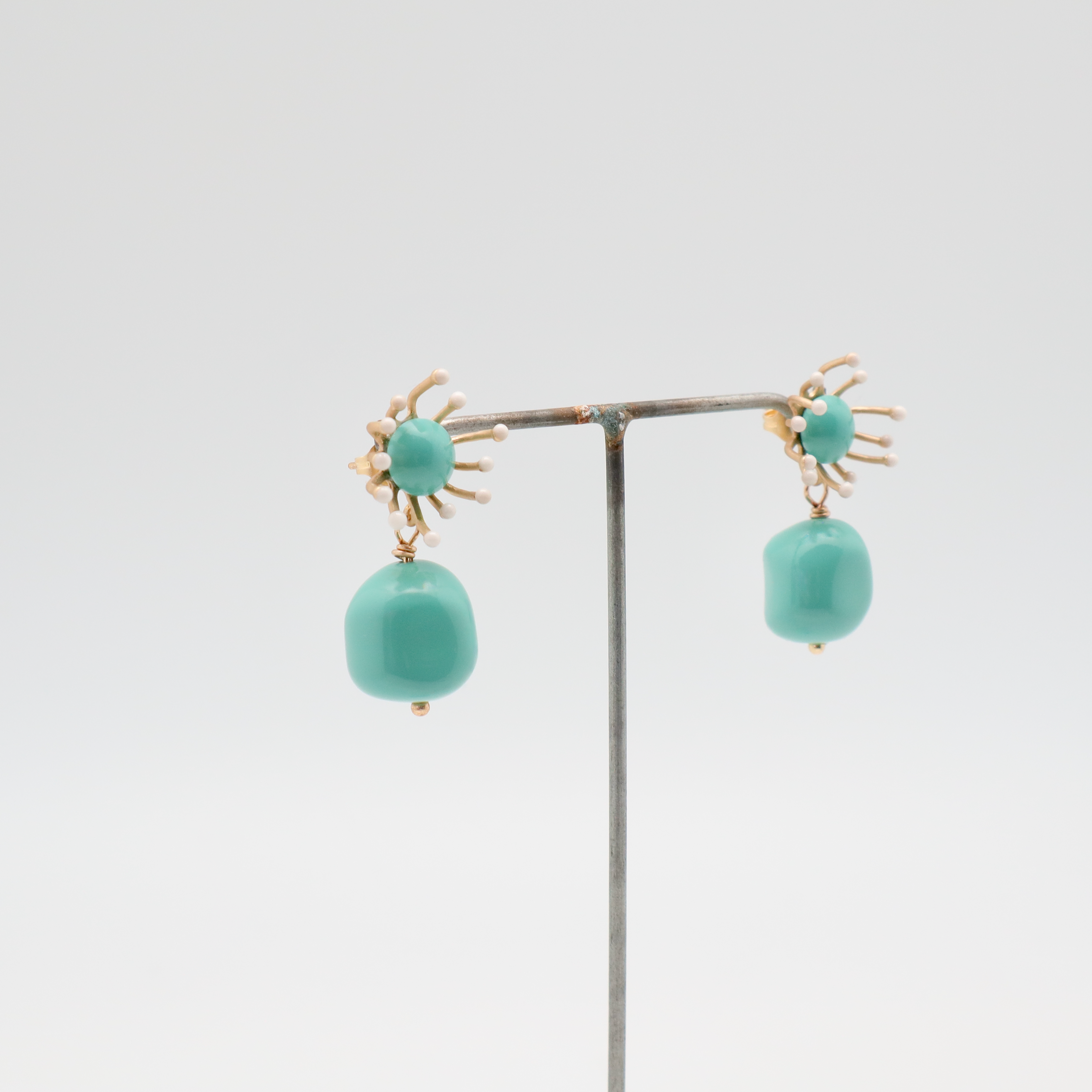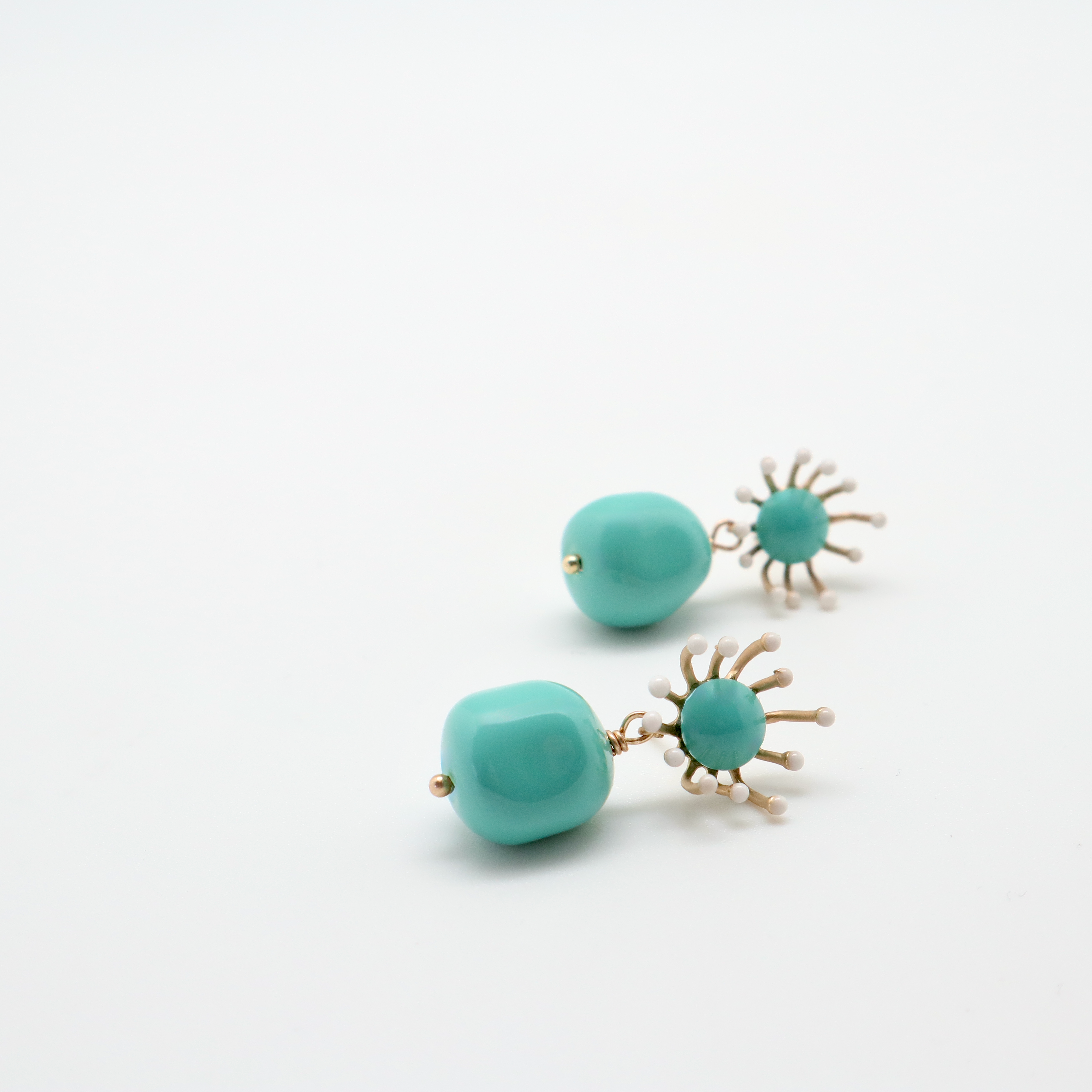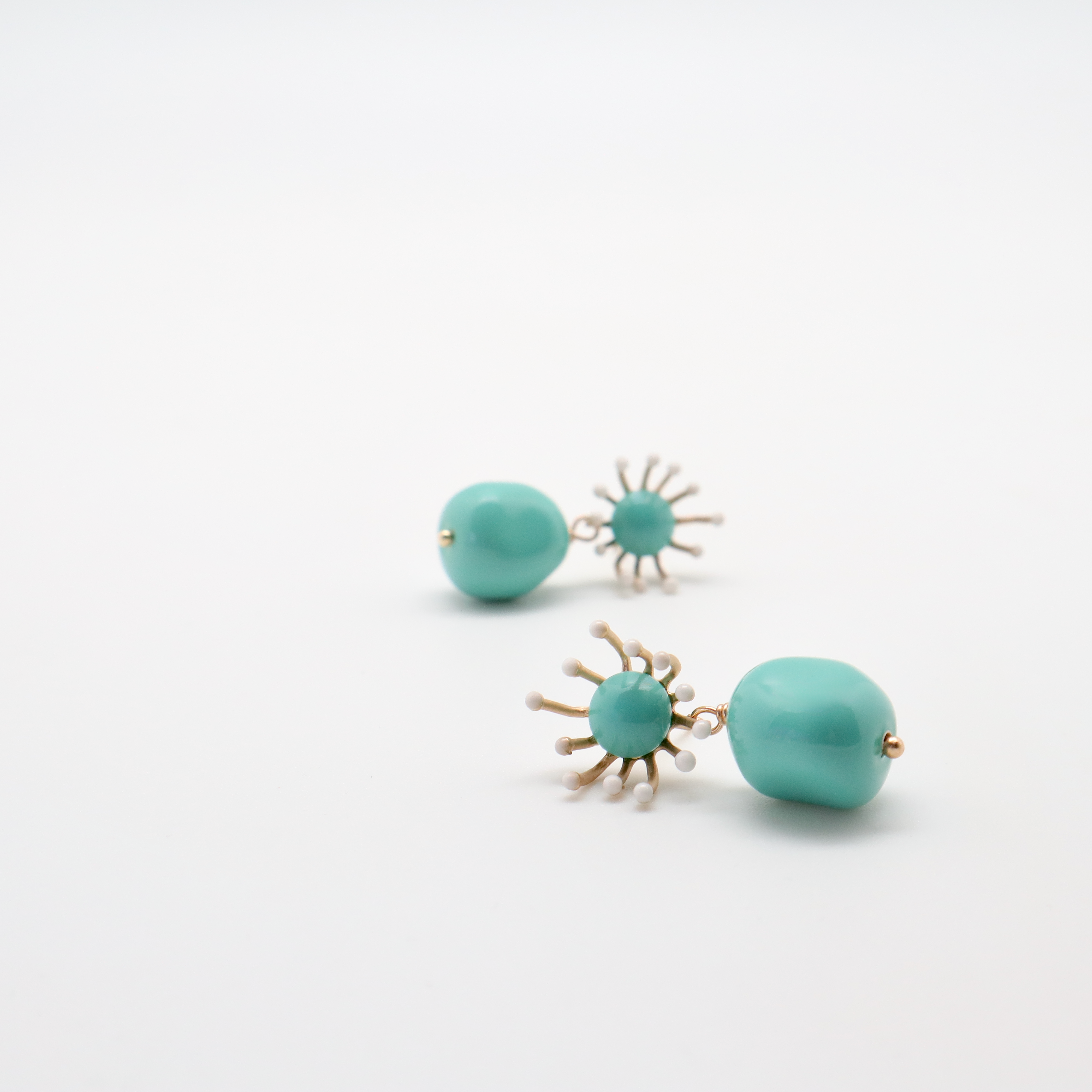Adorned with a stunning turquoise coated crystal, these ear studs are the perfect everyday accessory.
