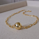 This gold ball link chain features a sleek design with polished, rounded links that create a captivating shimmer.