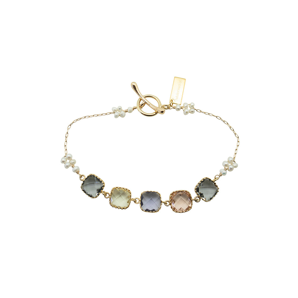 Exquisitely combined with luminous clusters of micro pearls on a delicate gold-tone chain, it’s finished with a toggle closure that acts as a striking accent.