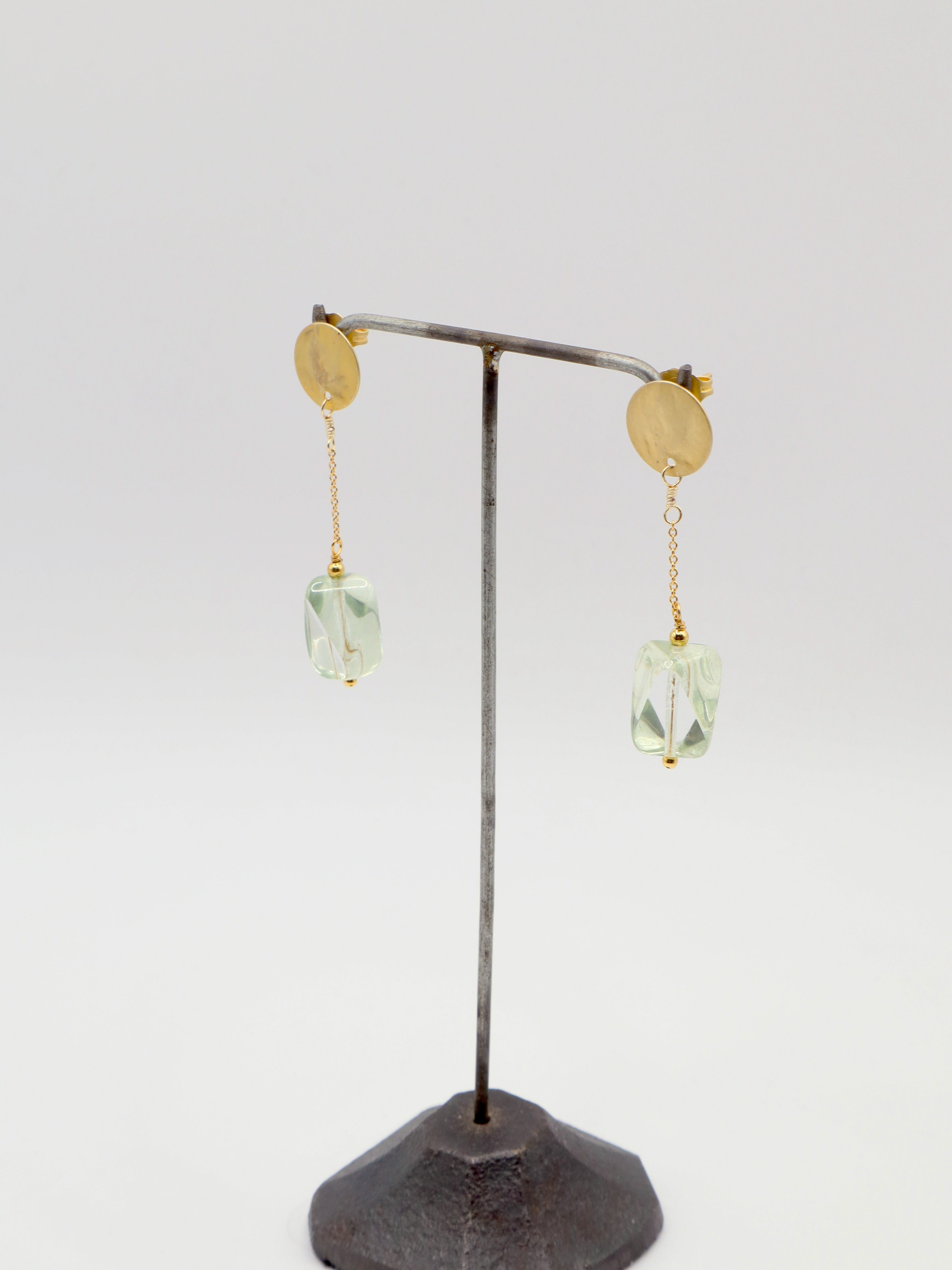 They’re defined by their round posts with delicately rippled finishes, cascading down to dainty chains and onto the main highlights: drops of shimmering mint green stones that will freshen up any look.