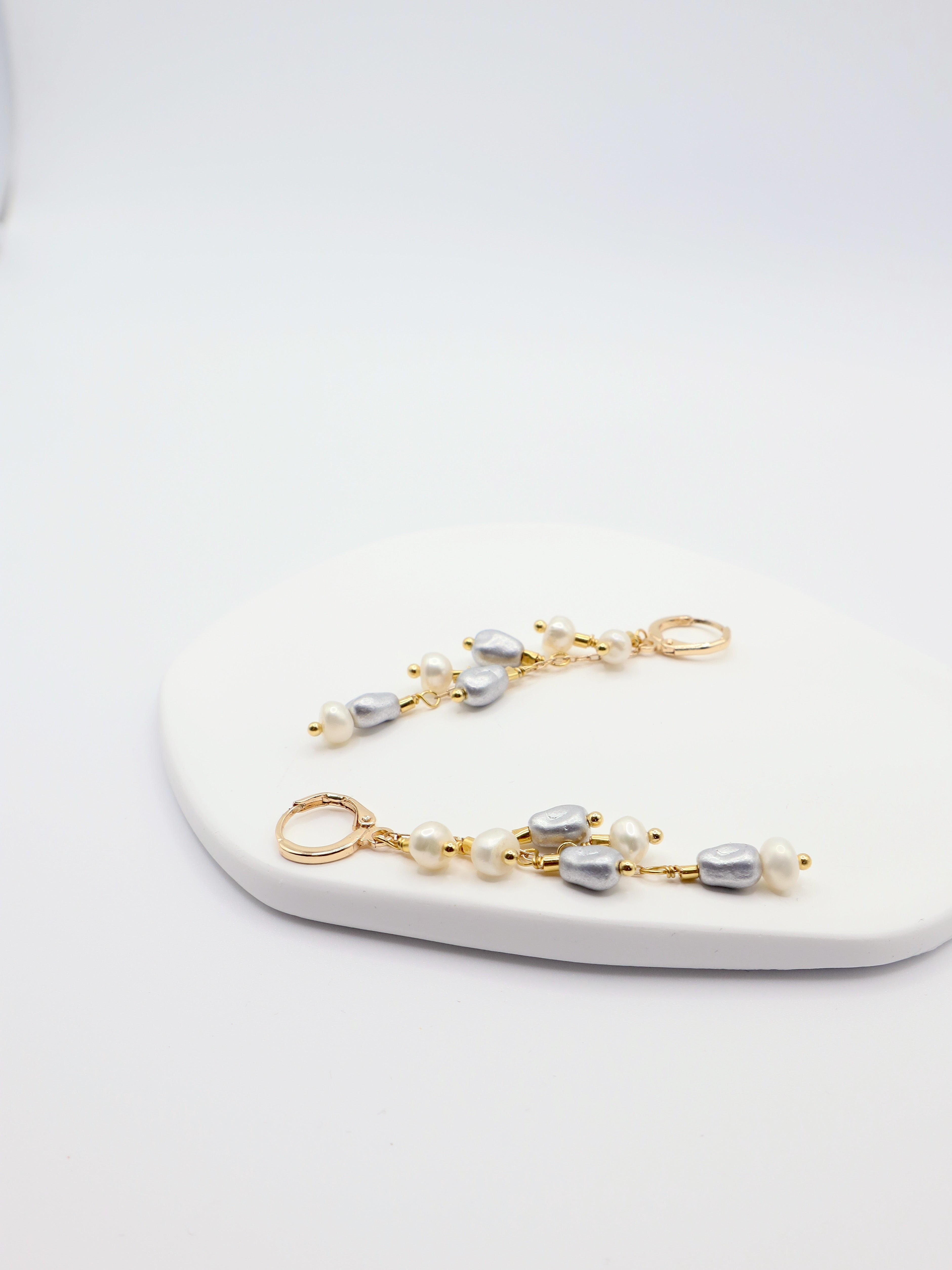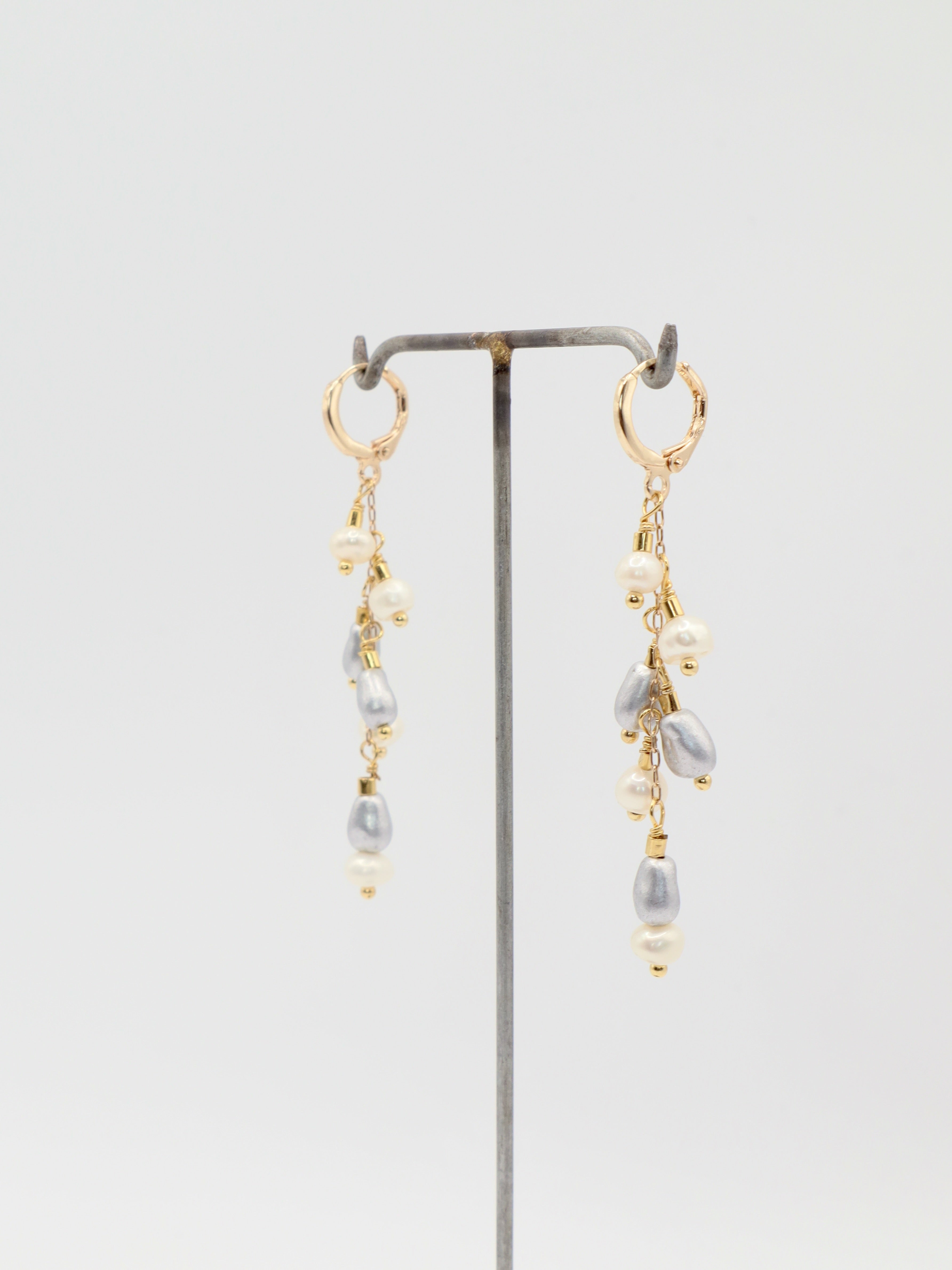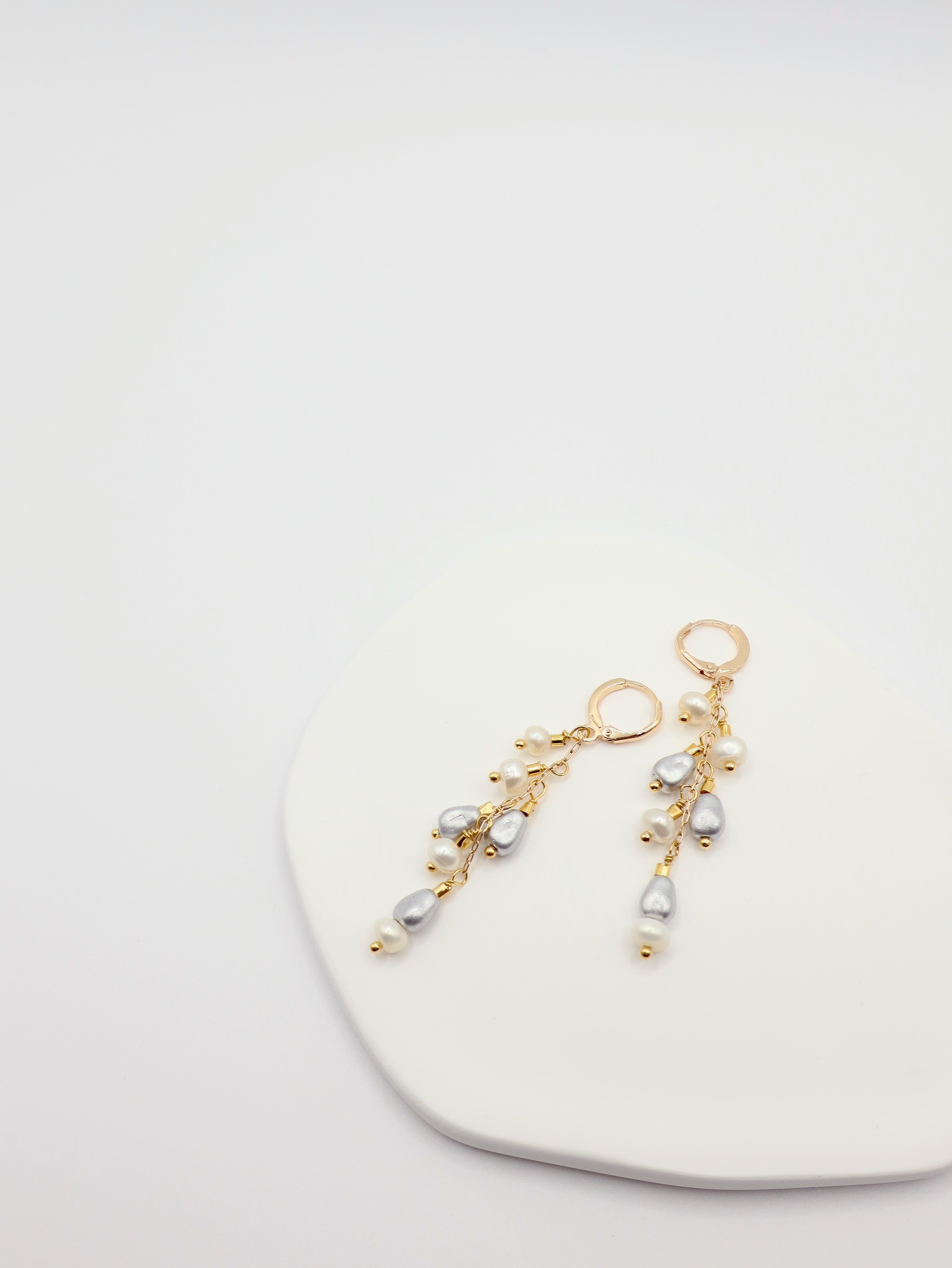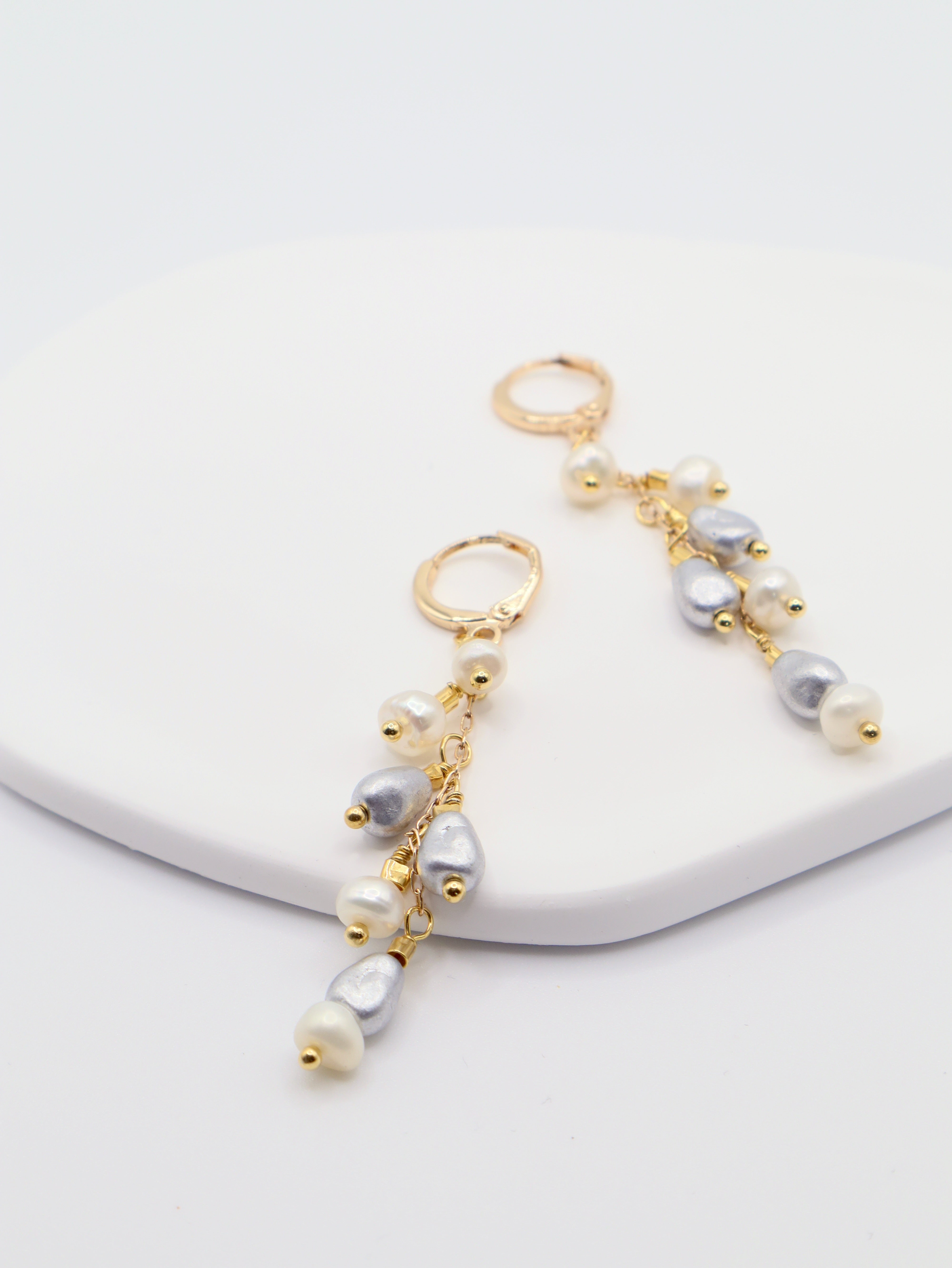 Introducing our Daniela Earrings, crafted with cascading freshwater pearls, matte silver glass stones, and a playful yet feminine design.