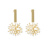 Backed with rectangular matte gold posts, the main stars of the show are white enamel coral reefs that sway and sparkle with you.