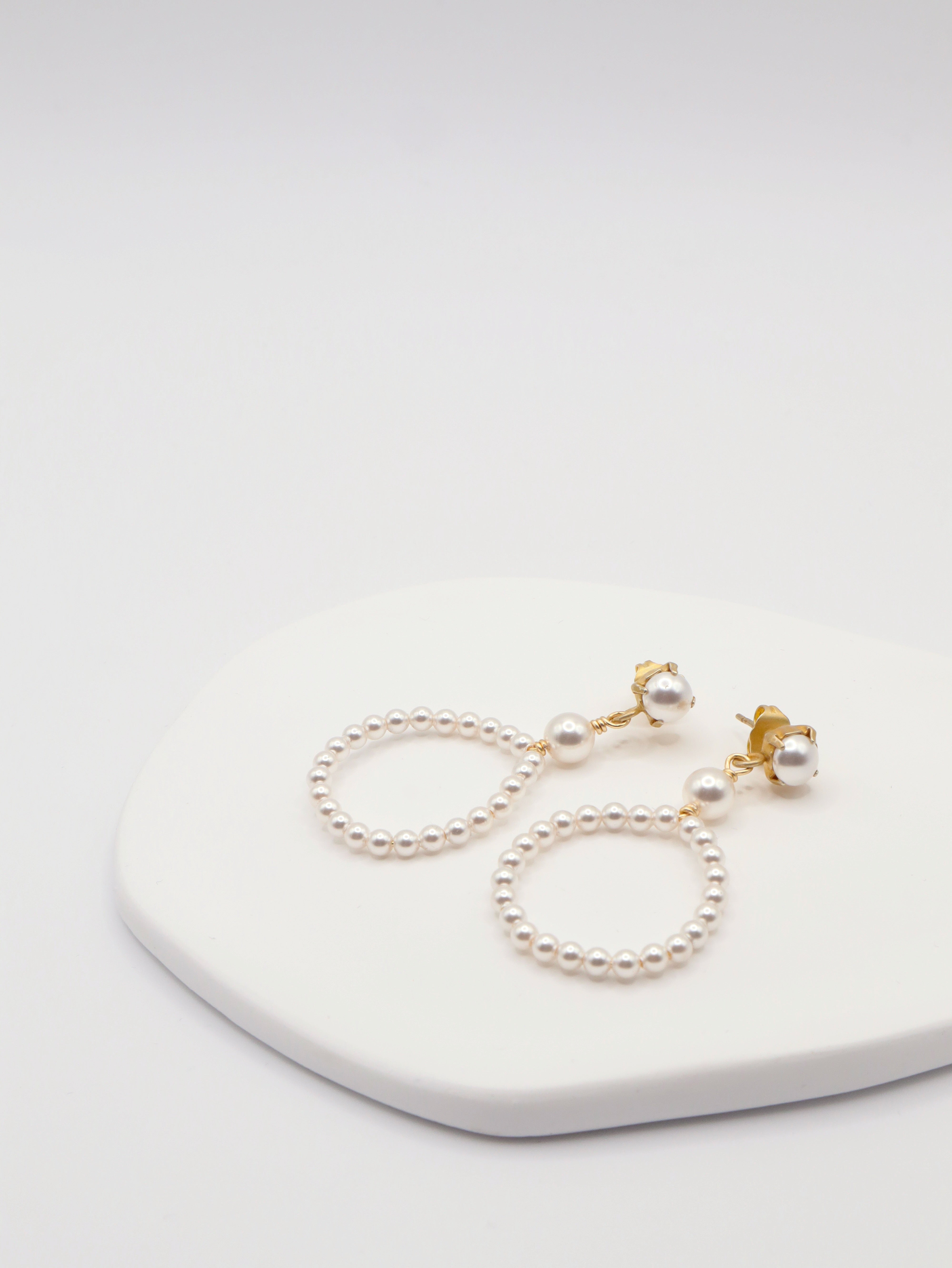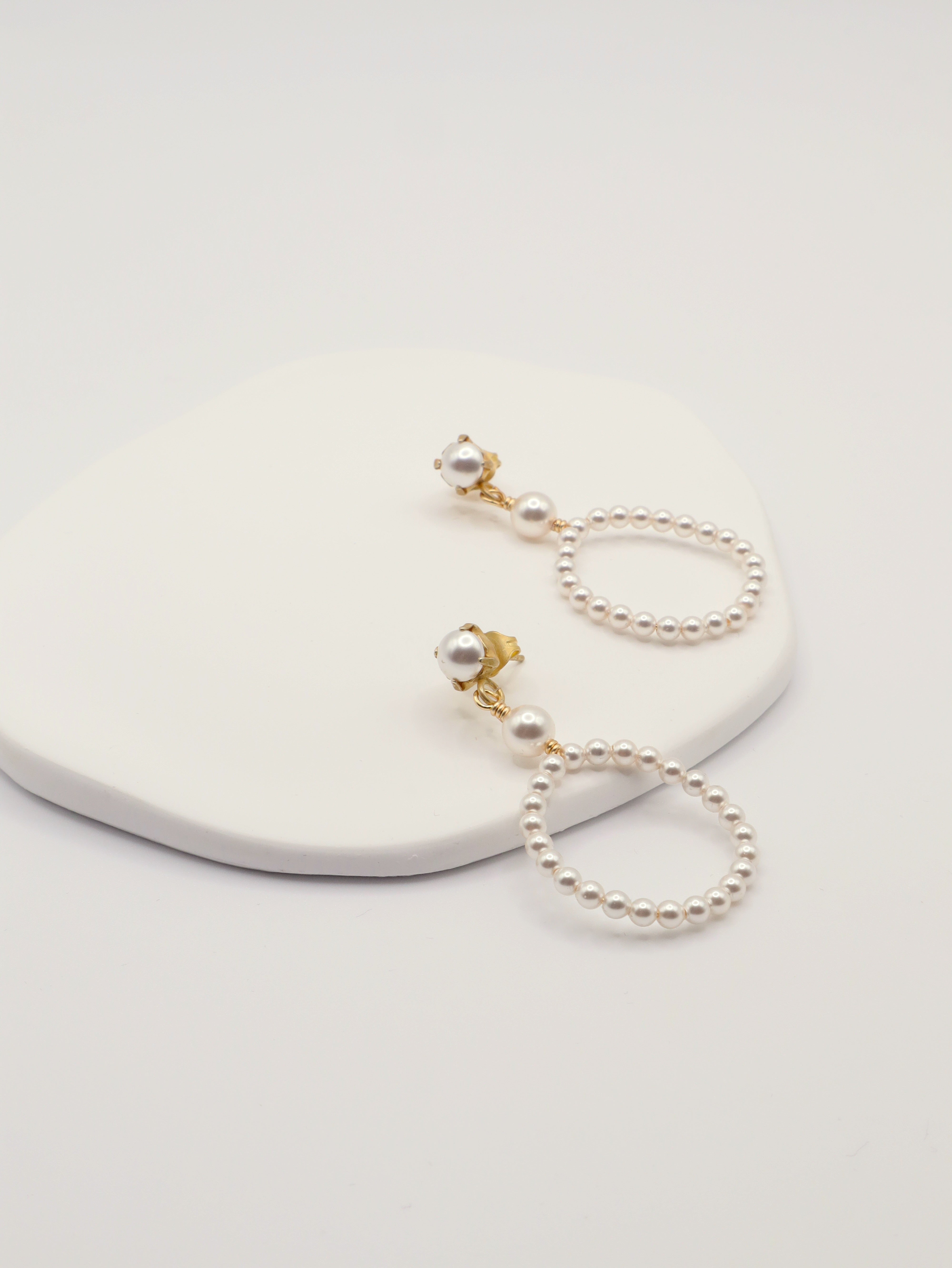 Swarovski crystal pearl beaded hoop earrings on post fitting.