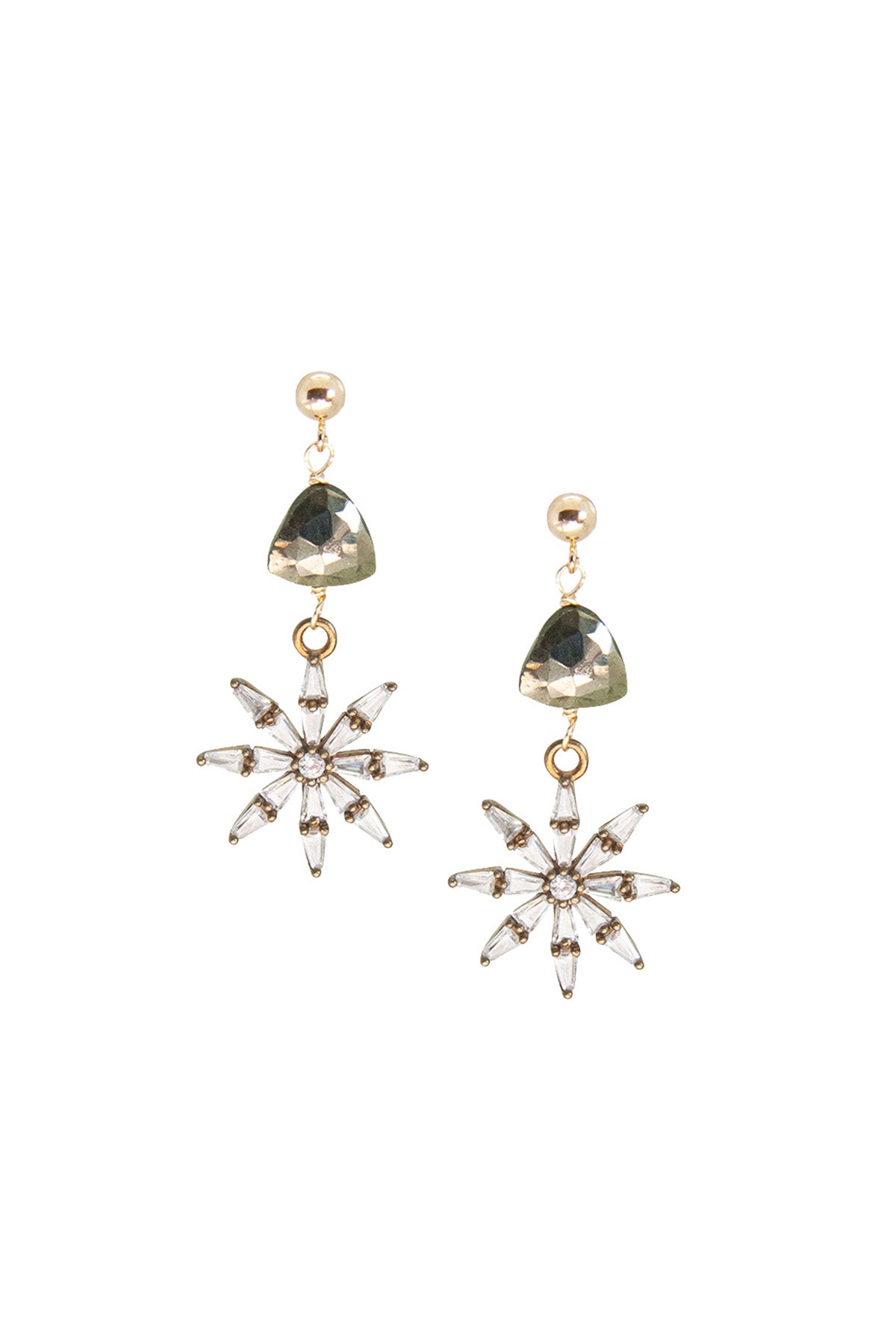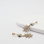 Designed with gold-filled ball studs, the statement earrings have dangling drops of star-shaped rhinestones that glimmer beautifully under the light.