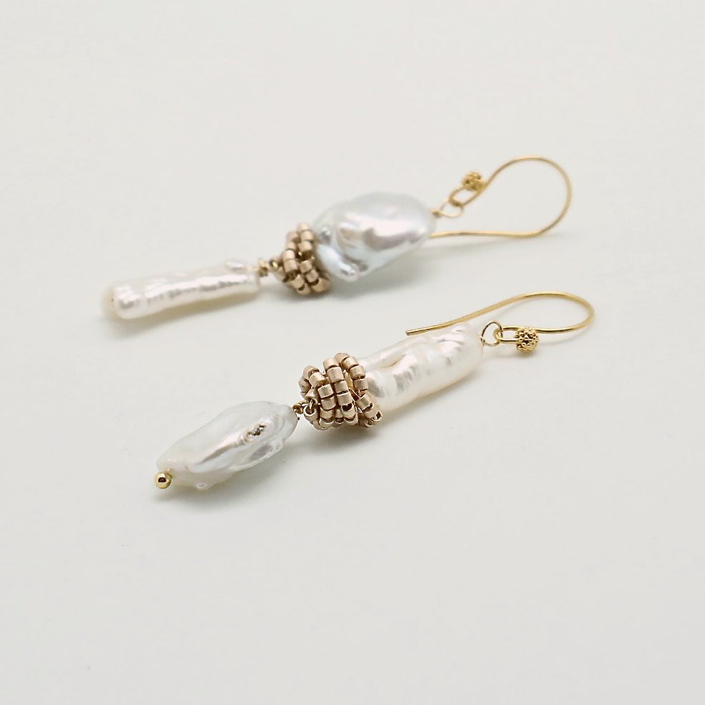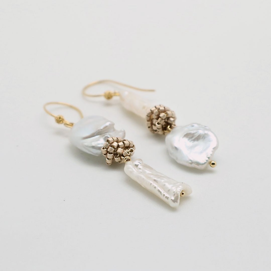 Introducing our Filipa Earrings - the perfect combination of mismatched style, lustrous freshwater pearls, and artistic design.