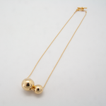 Two gold ball necklace on fine gold ball chain. Assembled by hand in our Dublin studio.