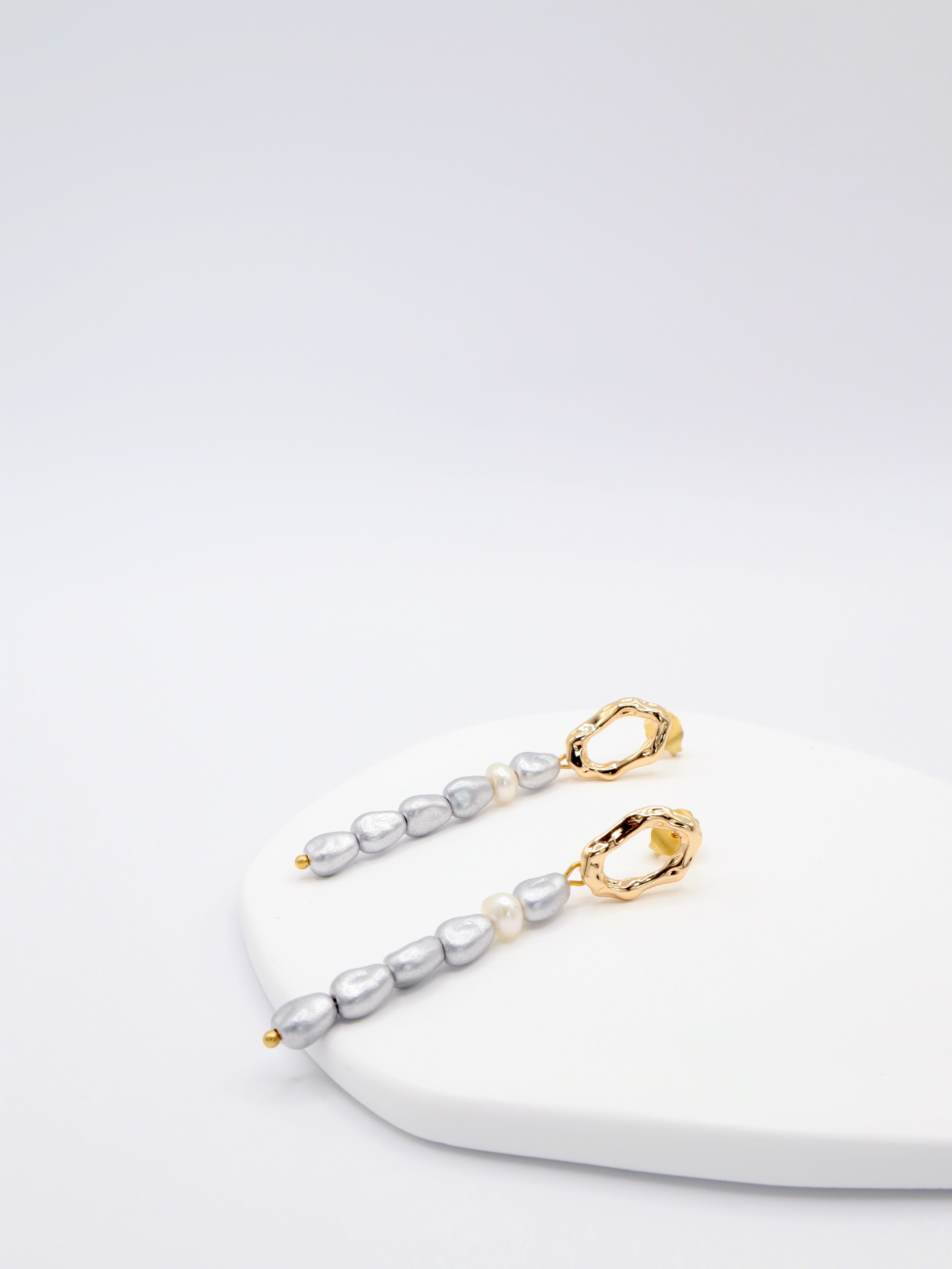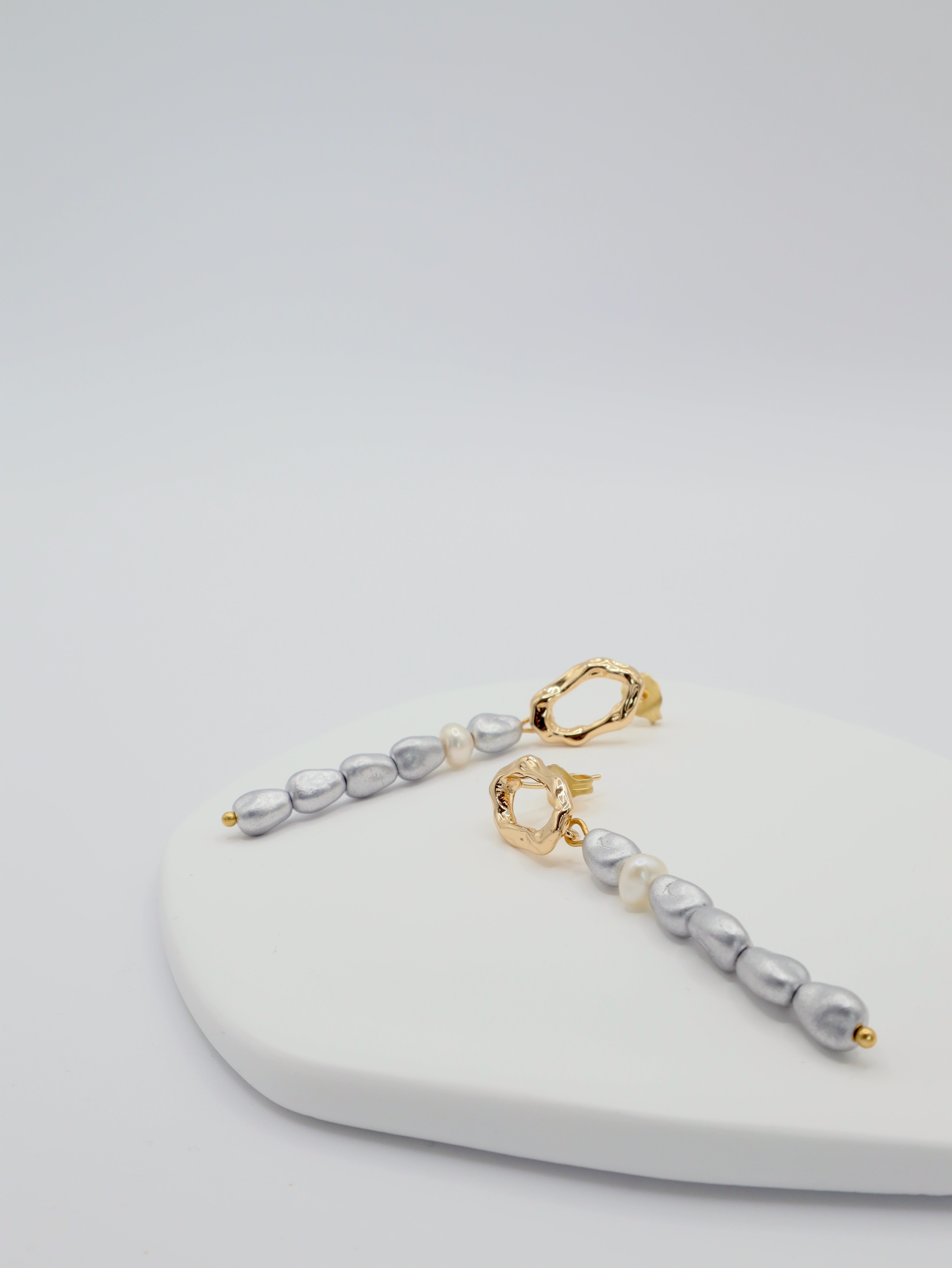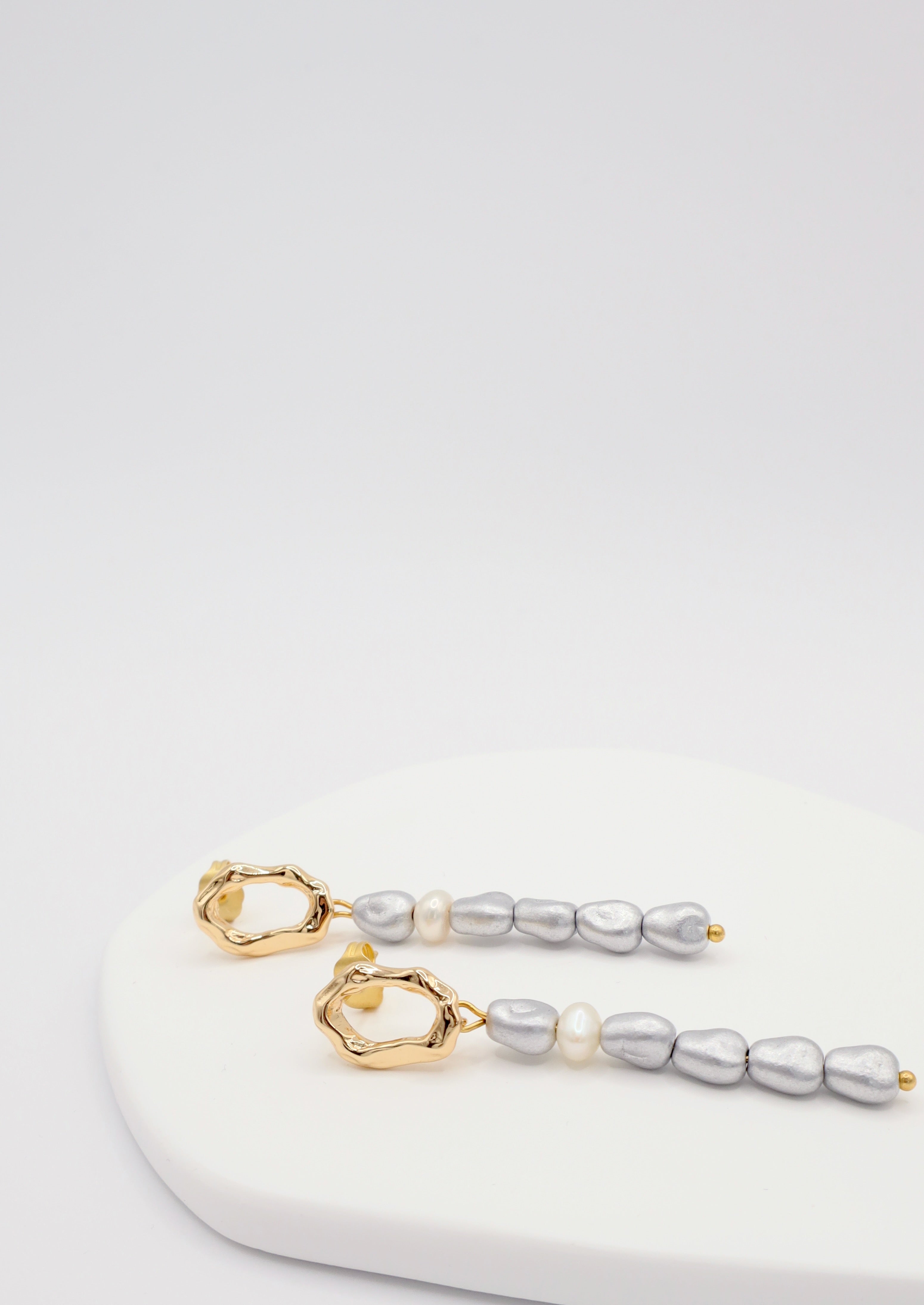 Crafted with a single freshwater pearl and a column of matte silver glass stones, the Dani Earrings Silver exude elegance and sophistication.