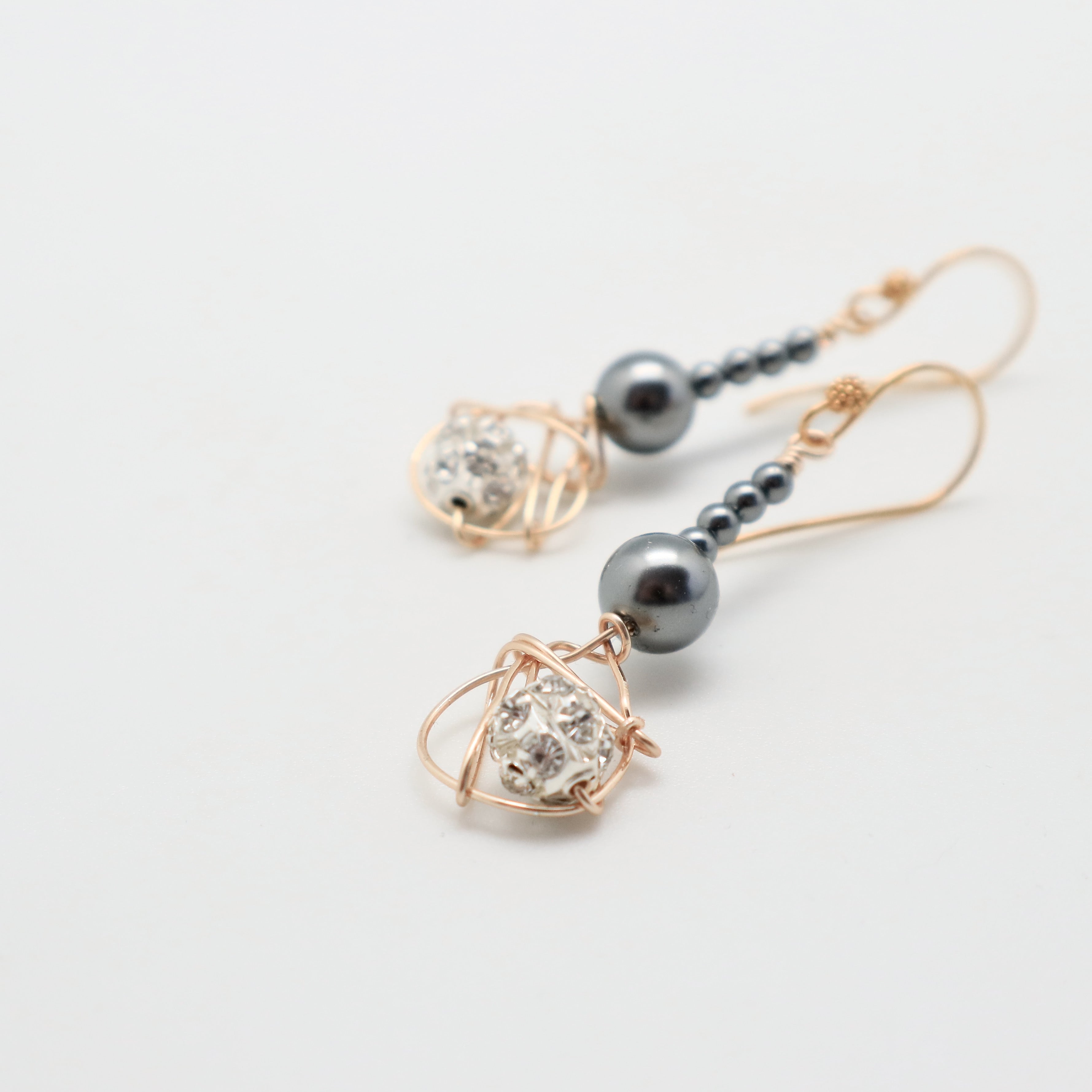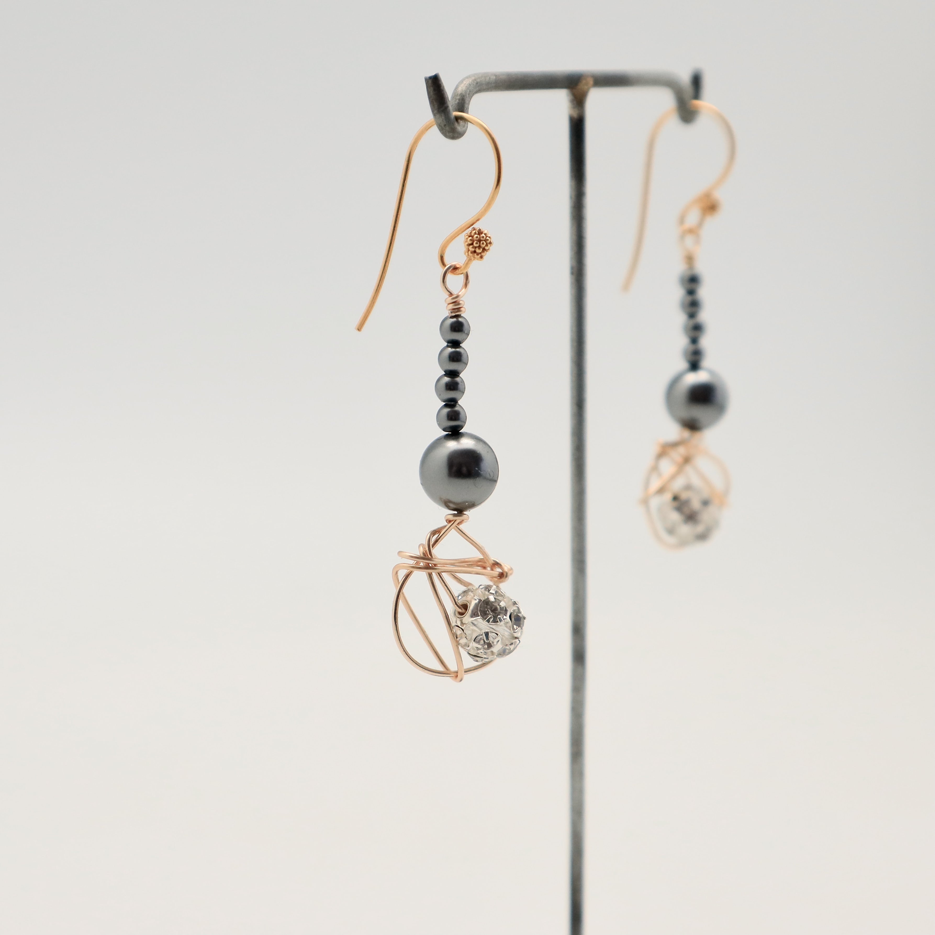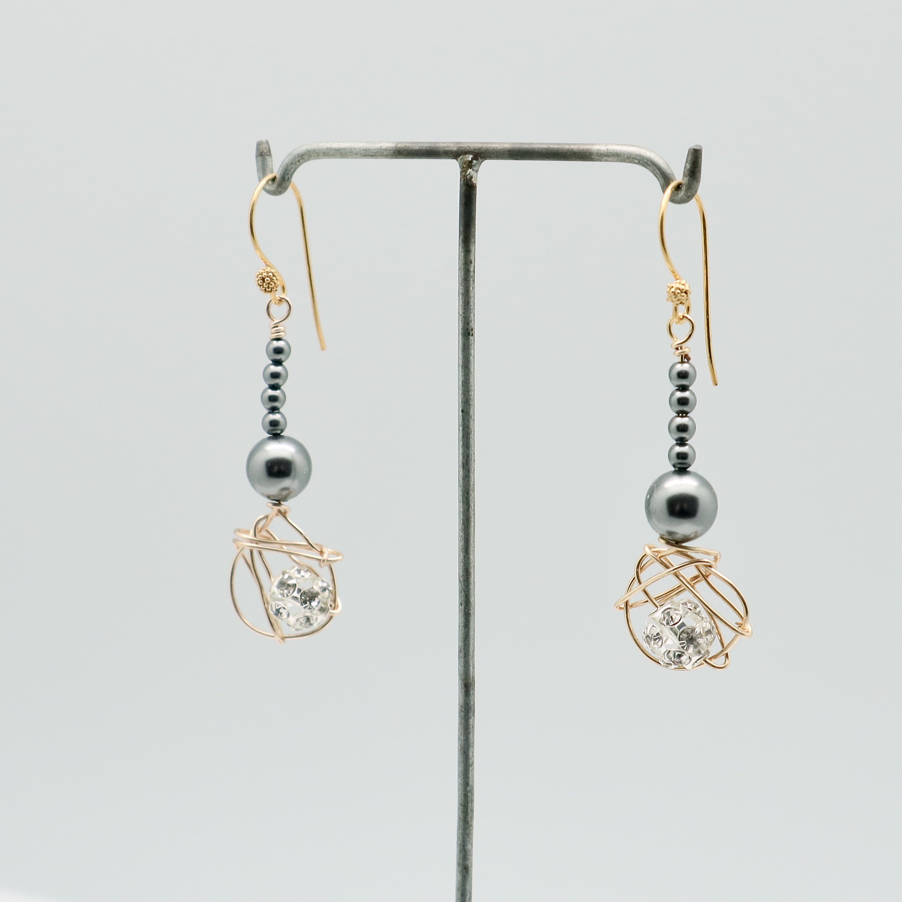 Hand formed cages encase sparkling rhinestones, making each pair truly one-of-a-kind.