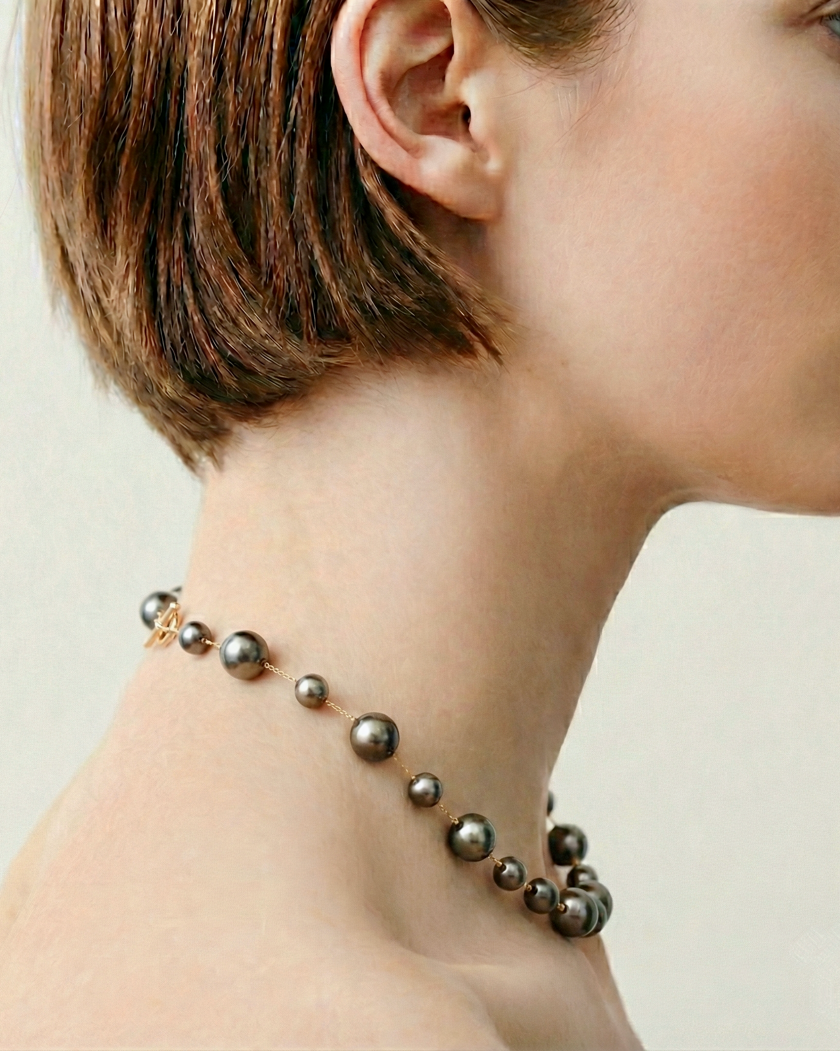 This elegant Lucia necklace showcases a stunning combination of shimmery Swarovski crystal pearls in two different sizes, all delicately strung on a high-quality gold filled chain.