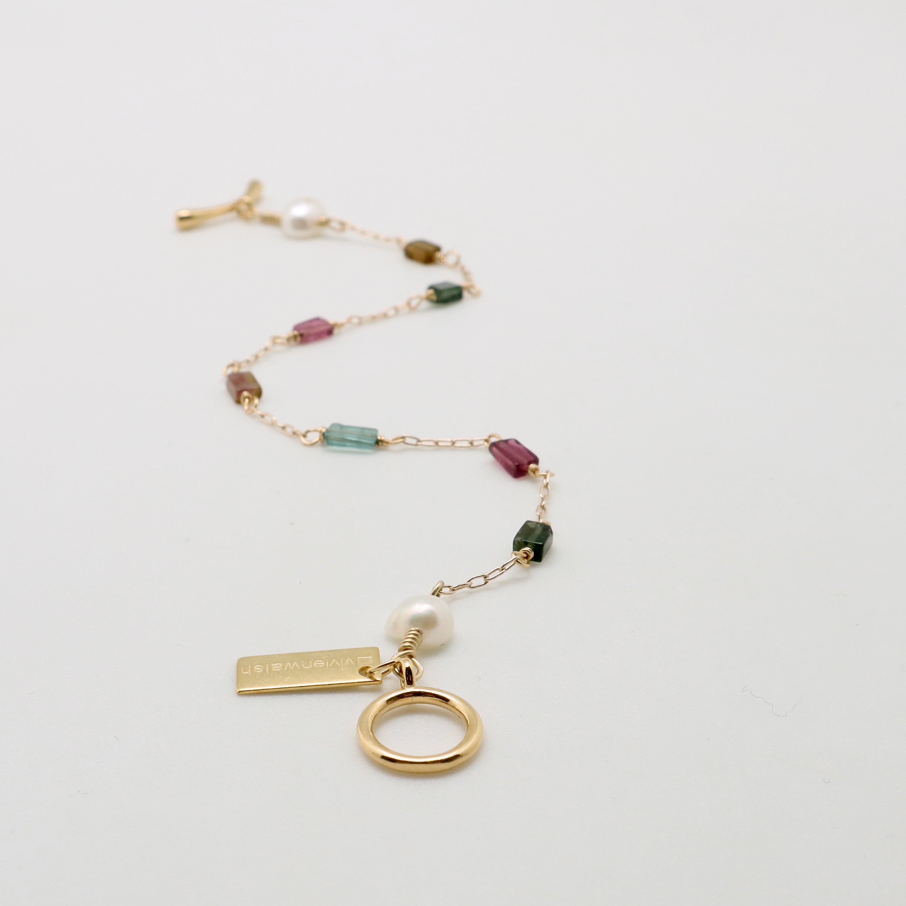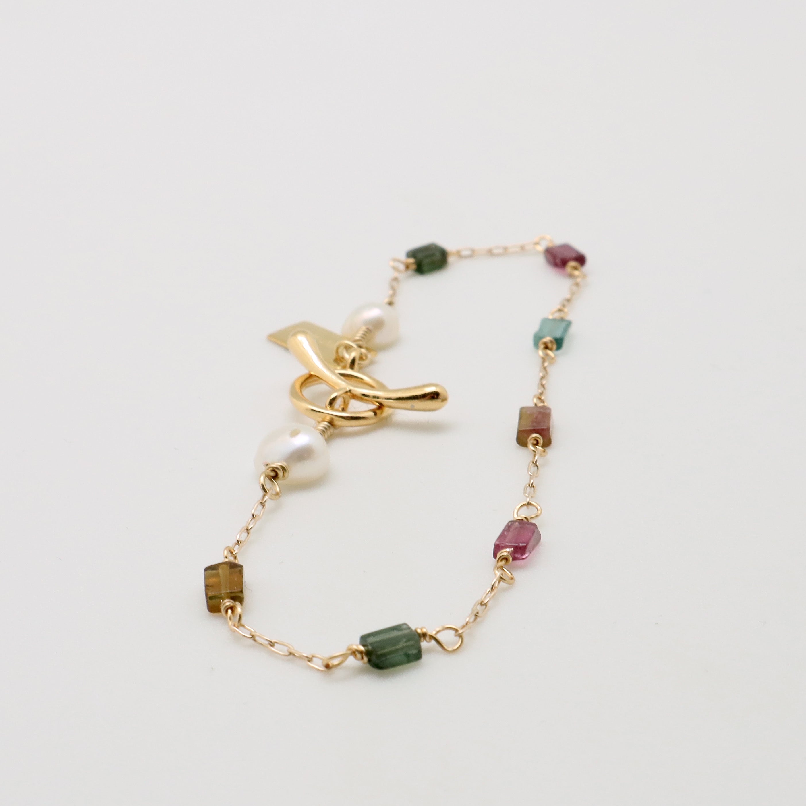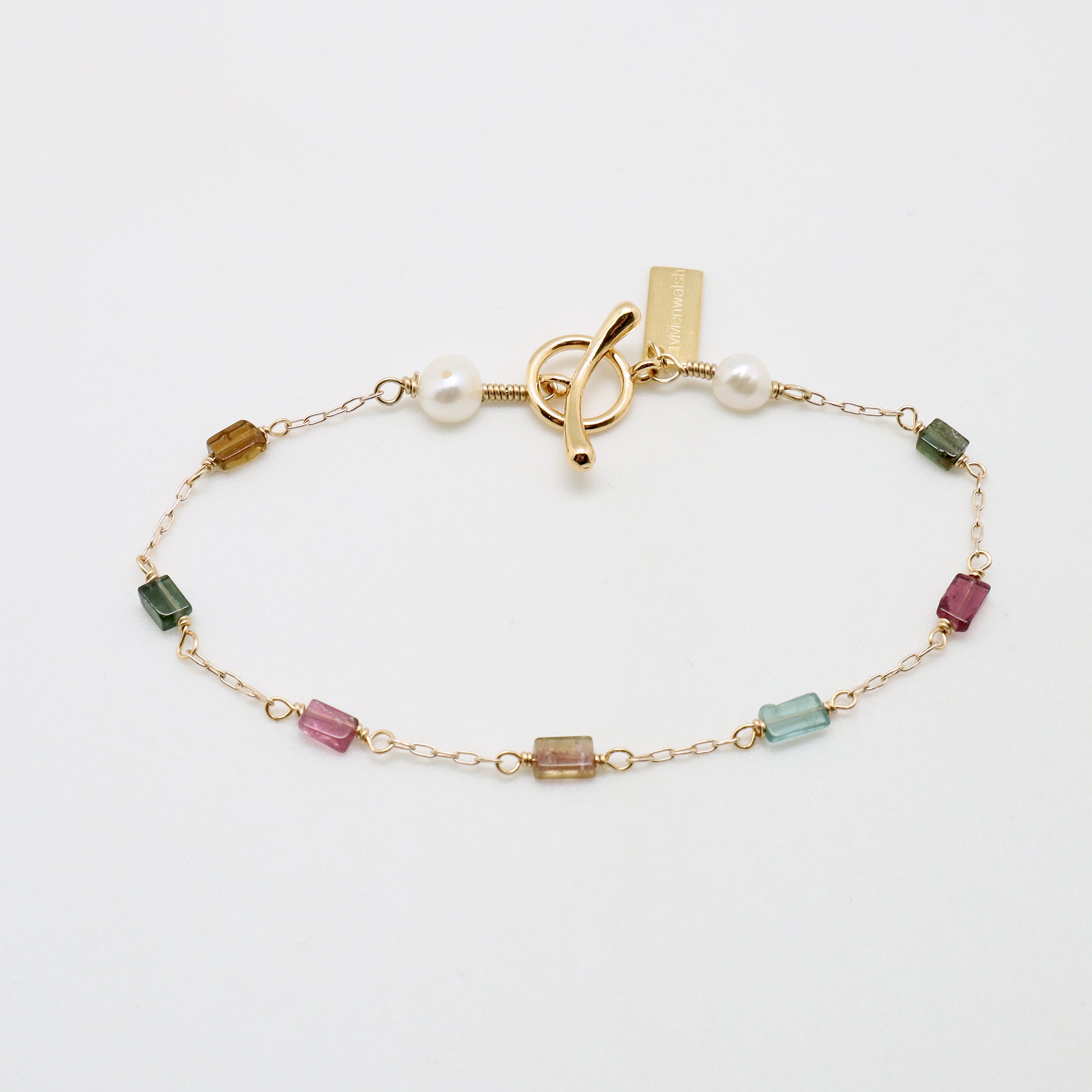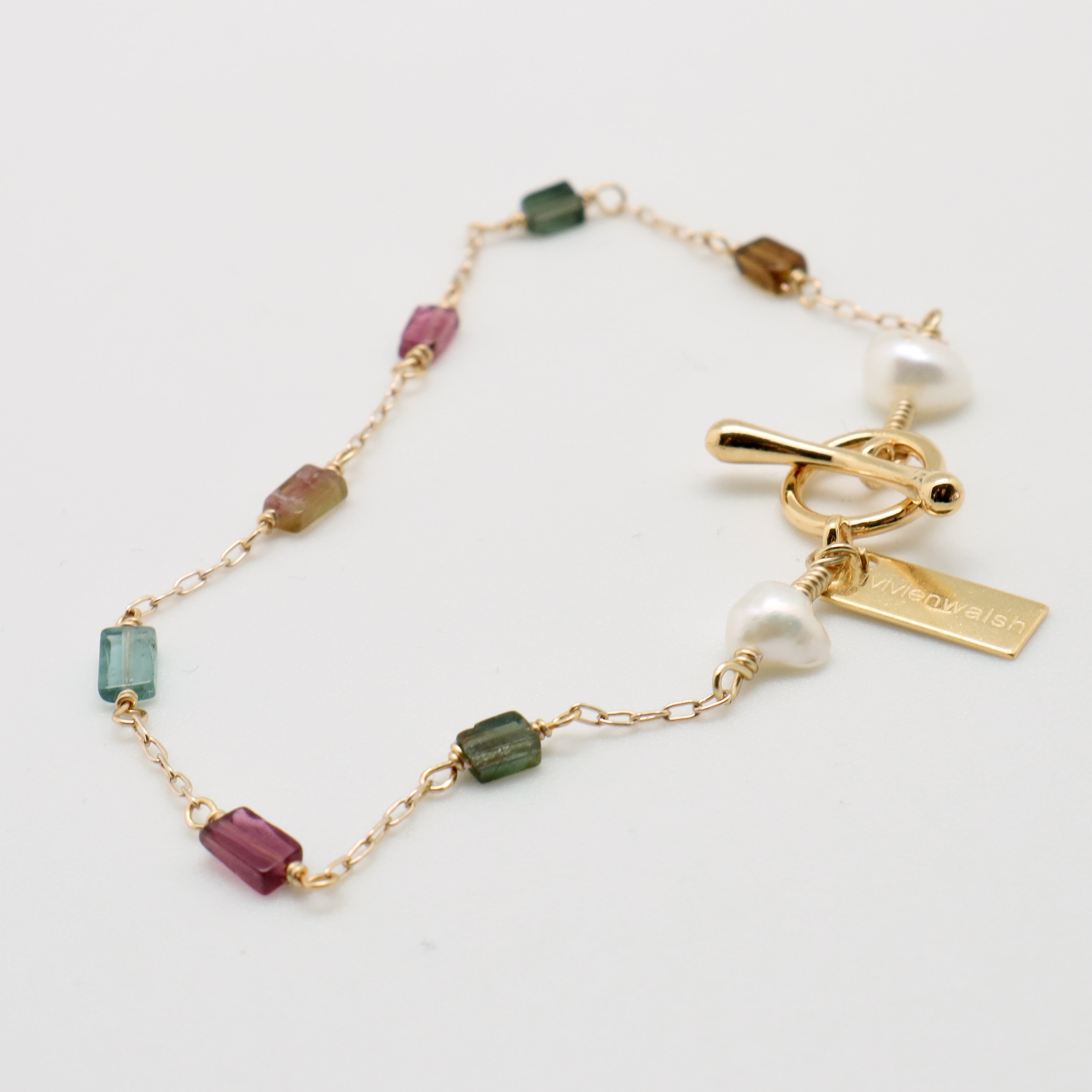 Adorned with delicate gold filled chain and stunning rectangle cut tourmalines, this bracelet is a must-have for any jewellery collection.