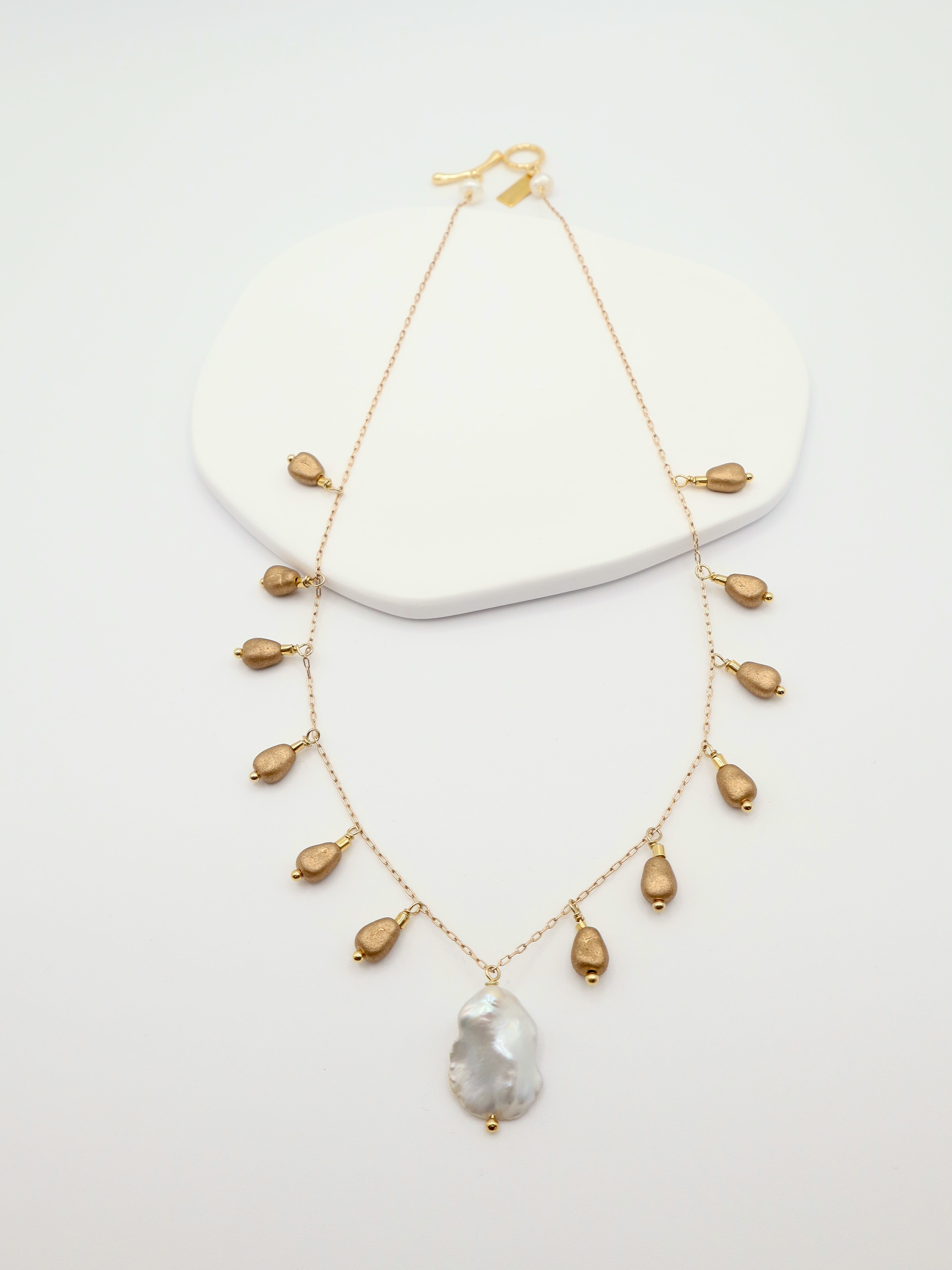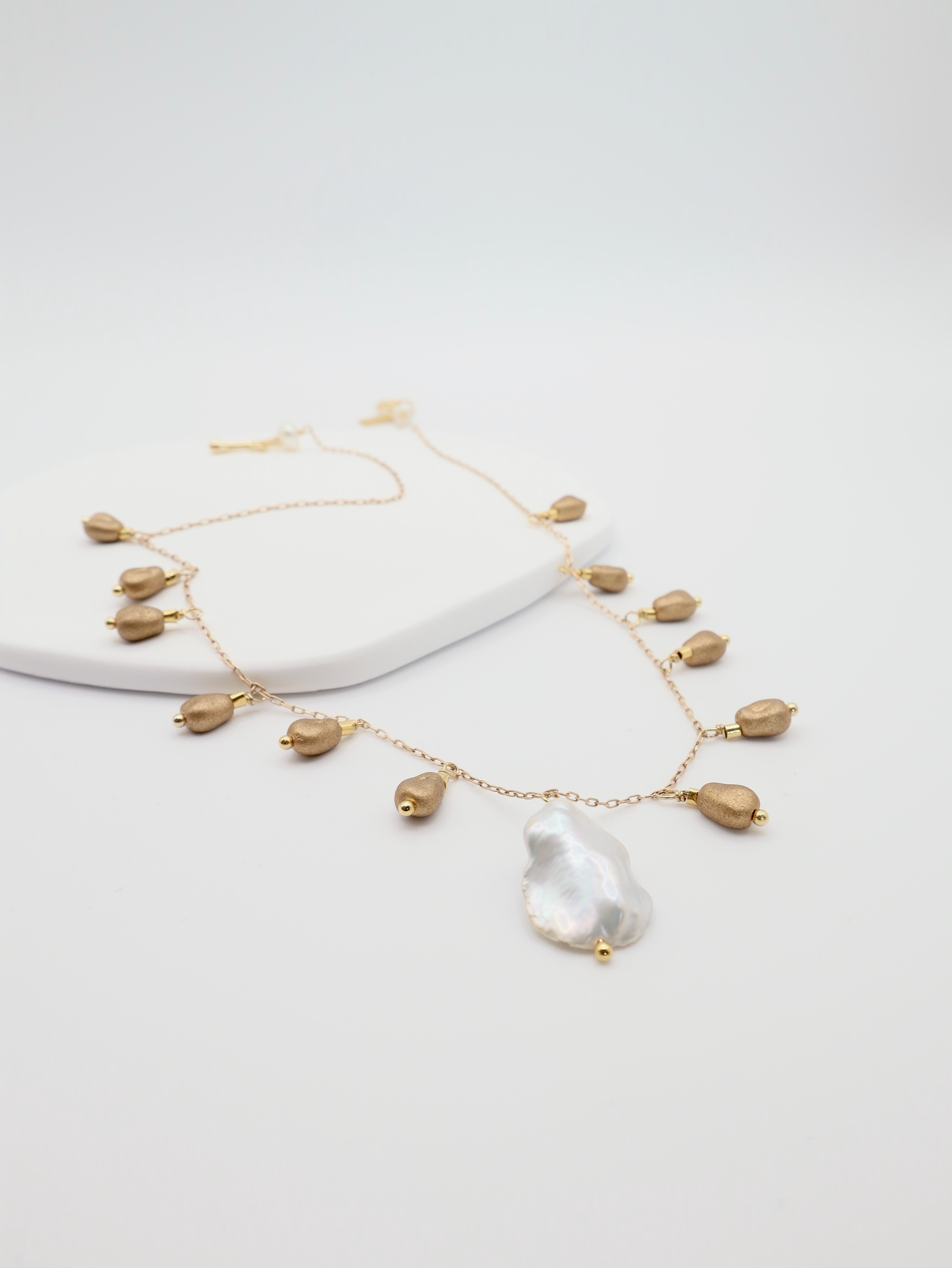The baroque pearl with delicate droplets creates a unique and timeless look, while the fine chain adds a touch of sophistication.