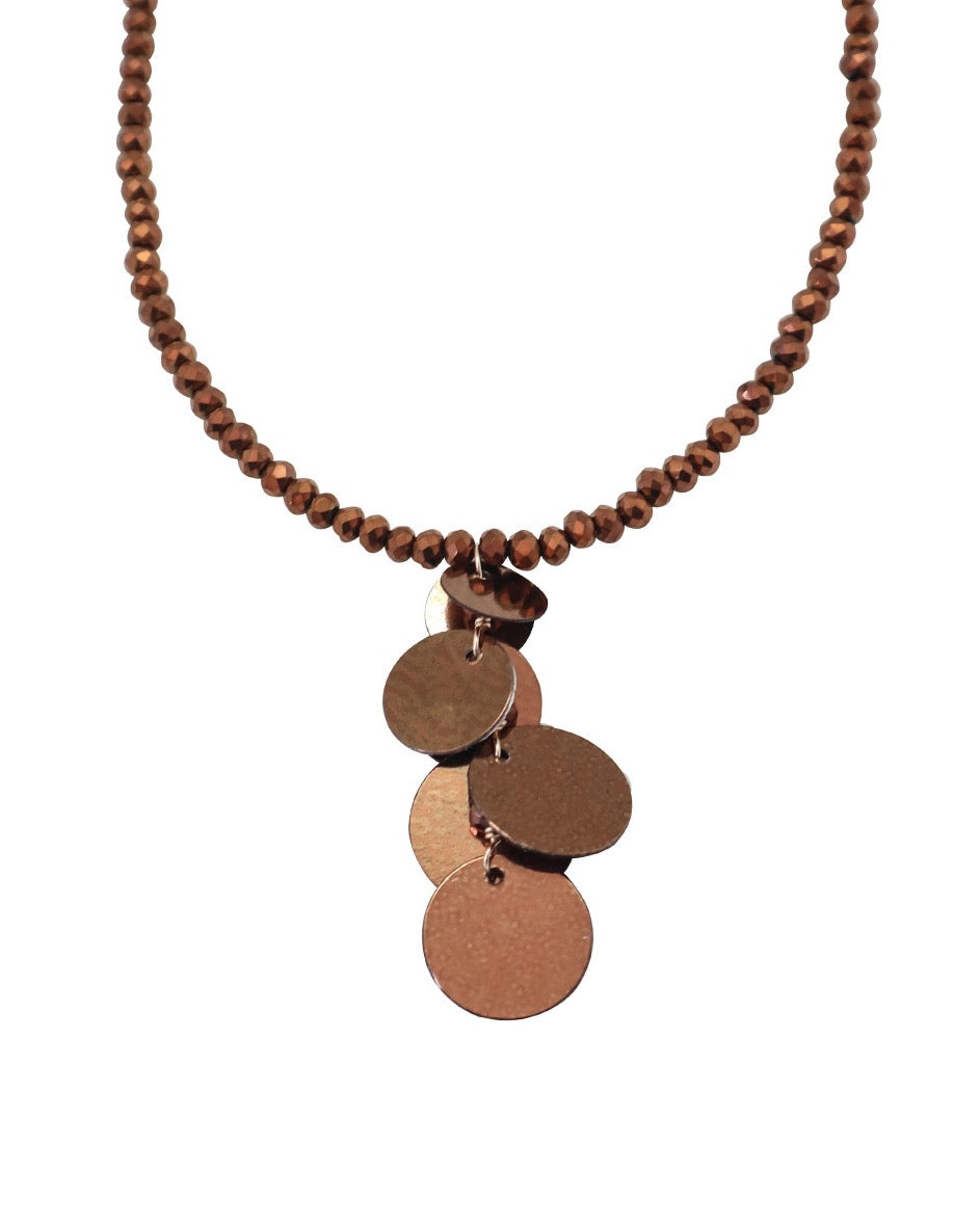 Crafted from luxurious bronze beads, it features a sequin column drop that shines with alluring glamour.