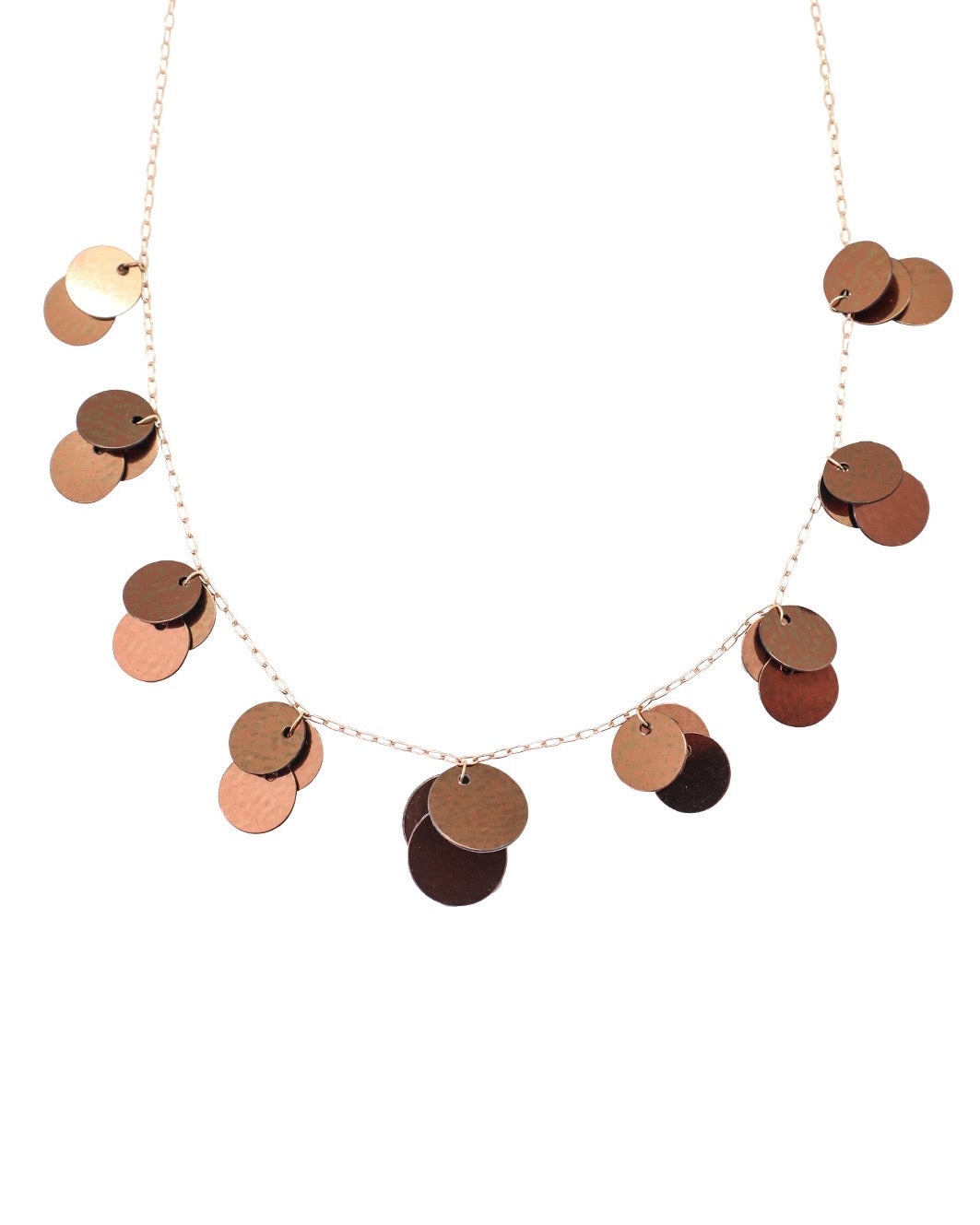 The Siena necklace is a timeless piece crafted with shimmering bronze sequins and a gold filled chain.