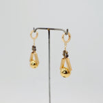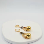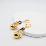 Featuring a cluster of bronze glass faceted stones, architectural gold bars, and a perfect domed sphere, they strike the balance between statement and sophistication.