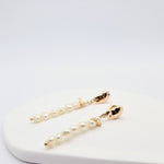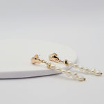 The Alison Earrings are characterized by elegant, sleek silhouettes of white pearls that glisten with your every movement.