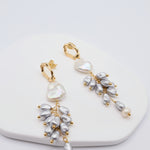 These statement earrings feature a stunning baroque pearl, complemented by a cluster of beautiful matte silver stones.