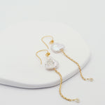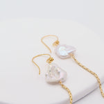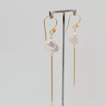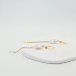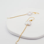 Embrace pure simplicity with the slinky pearl chain earrings, featuring a long matte gold-plated beading chain accented by lustrous freshwater baroque pearls.