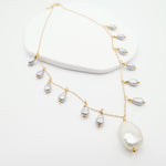 Adorned with delicate droplets and a stunning baroque pearl focal, this necklace exudes femininity.