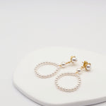 Swarovski crystal pearl beaded hoop earrings on post fitting.