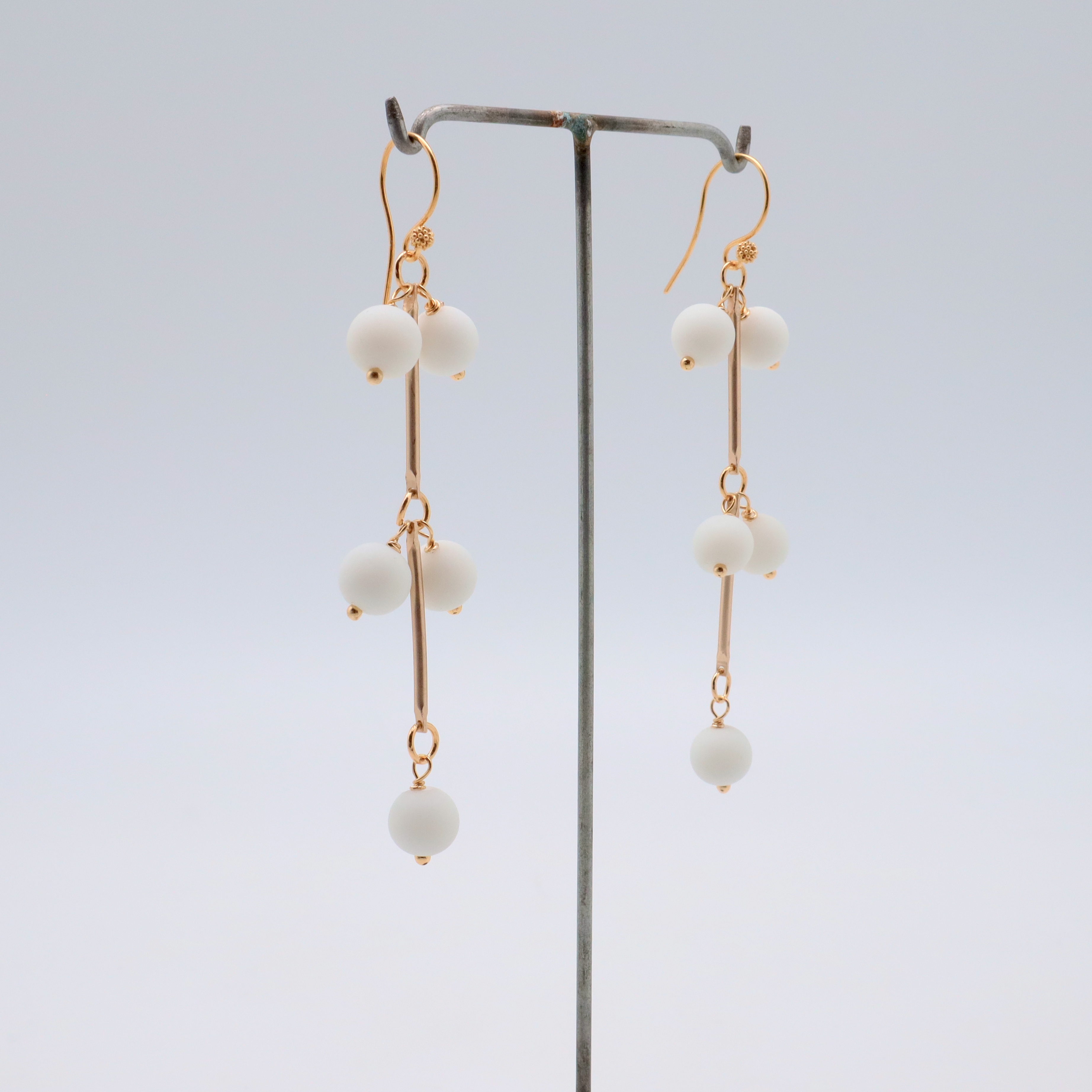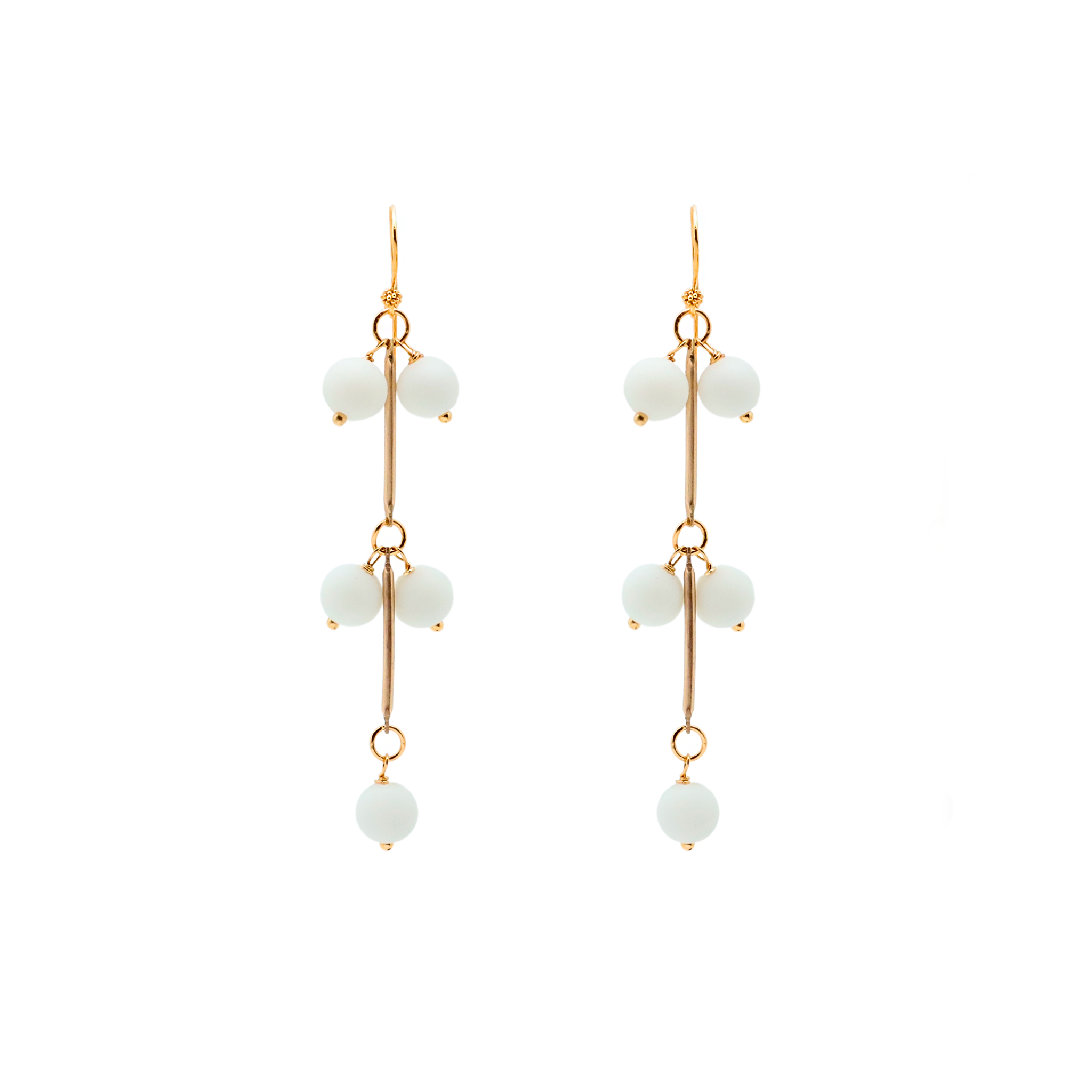 These shoulder dusters, crafted in gold and adorned with matte seaglass stones, add a touch of sophistication to any outfit.