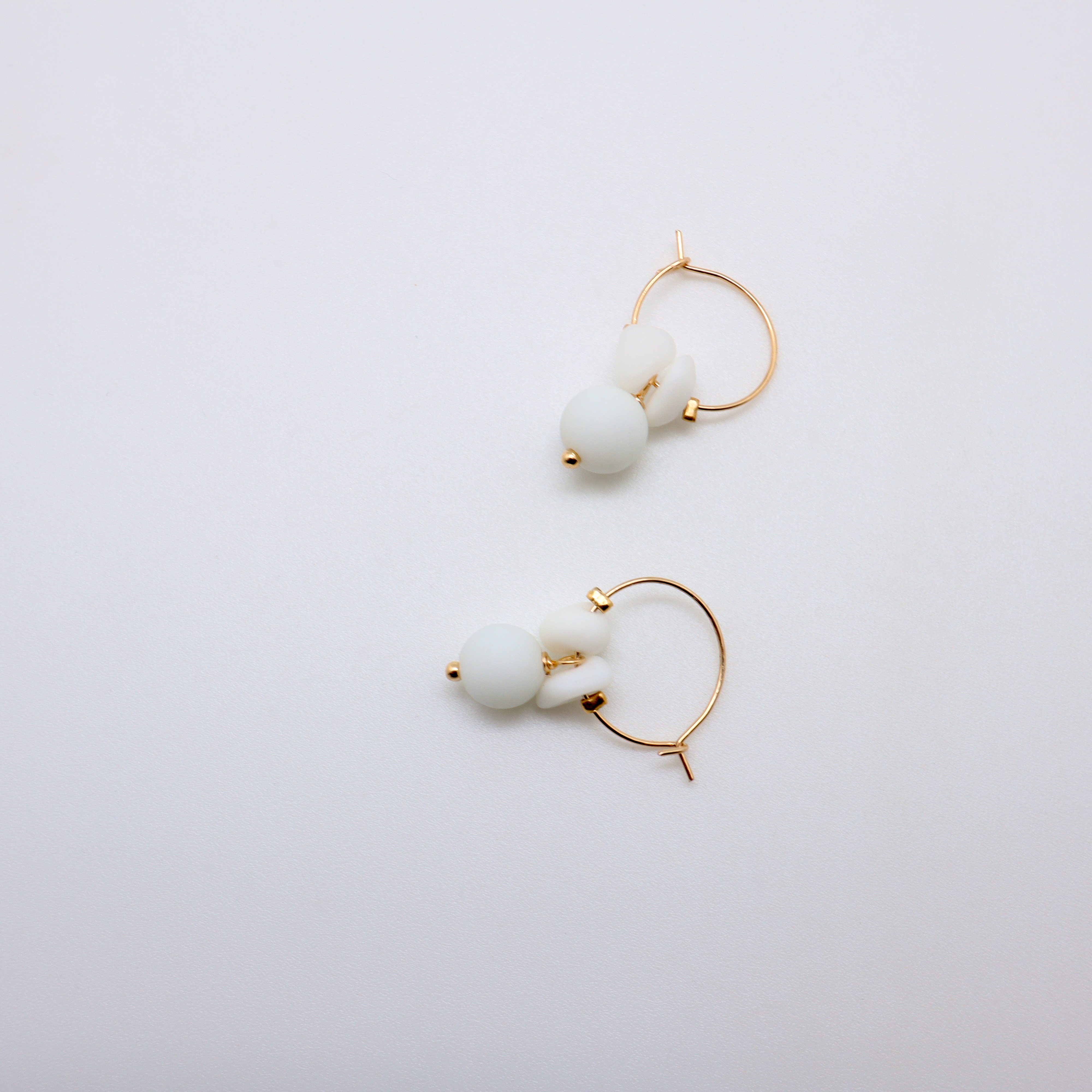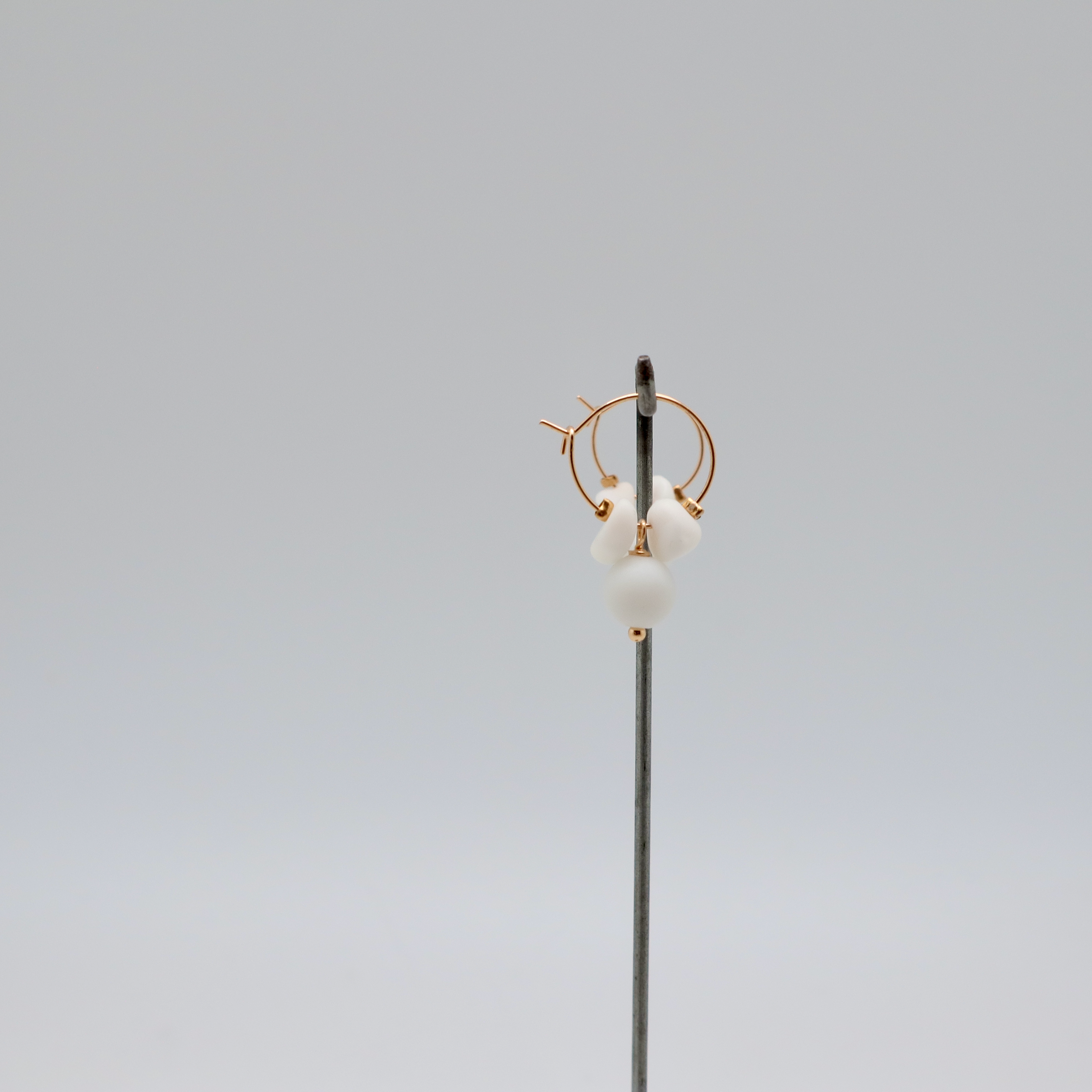 Adorned with white recycled seaglass stones, these mini hoops offer a modern and minimalist touch to any outfit.