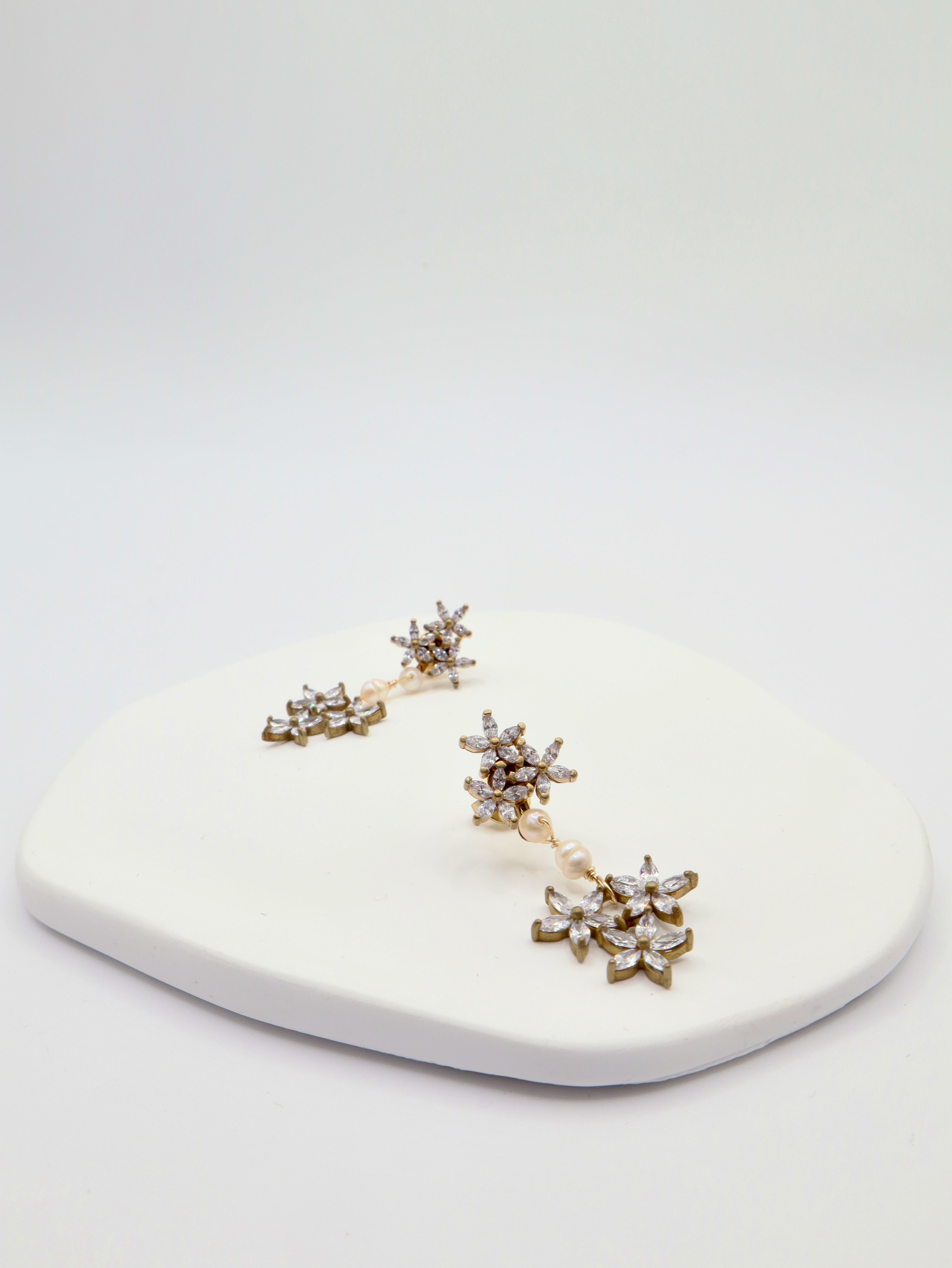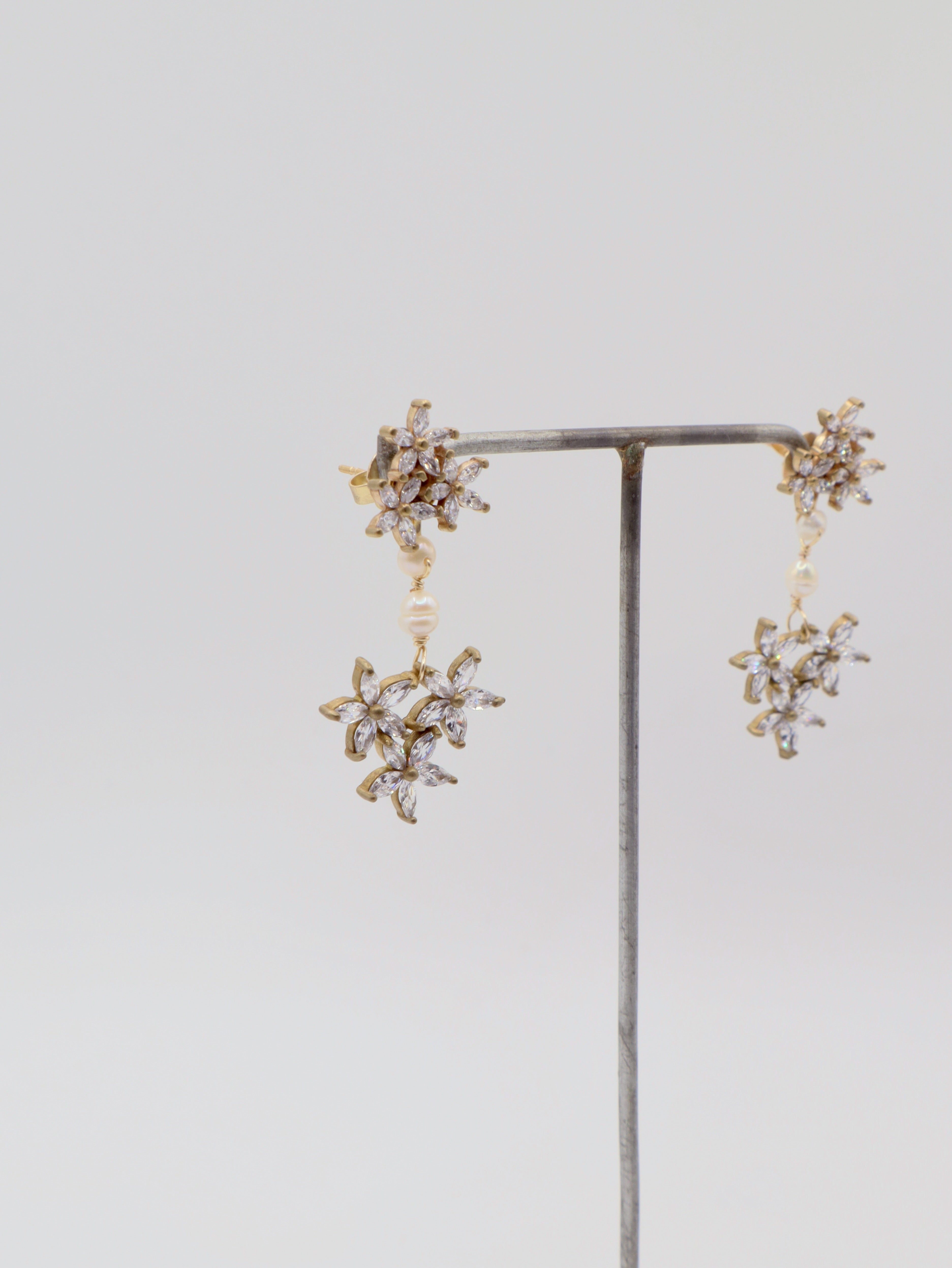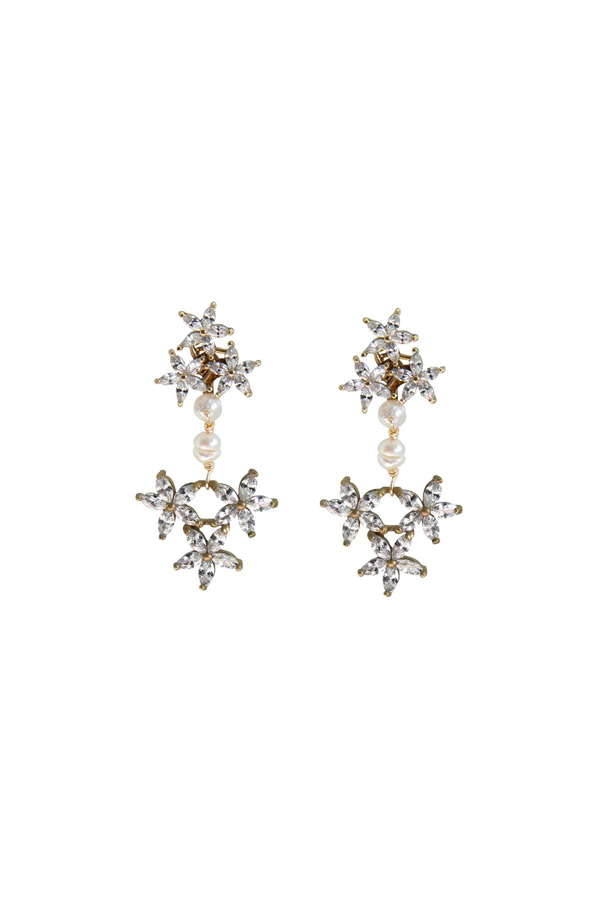 Made to glisten and sparkle from every angle, they’re characterised by their floral-shaped rhinestones and elegant drops of freshwater pearls.
