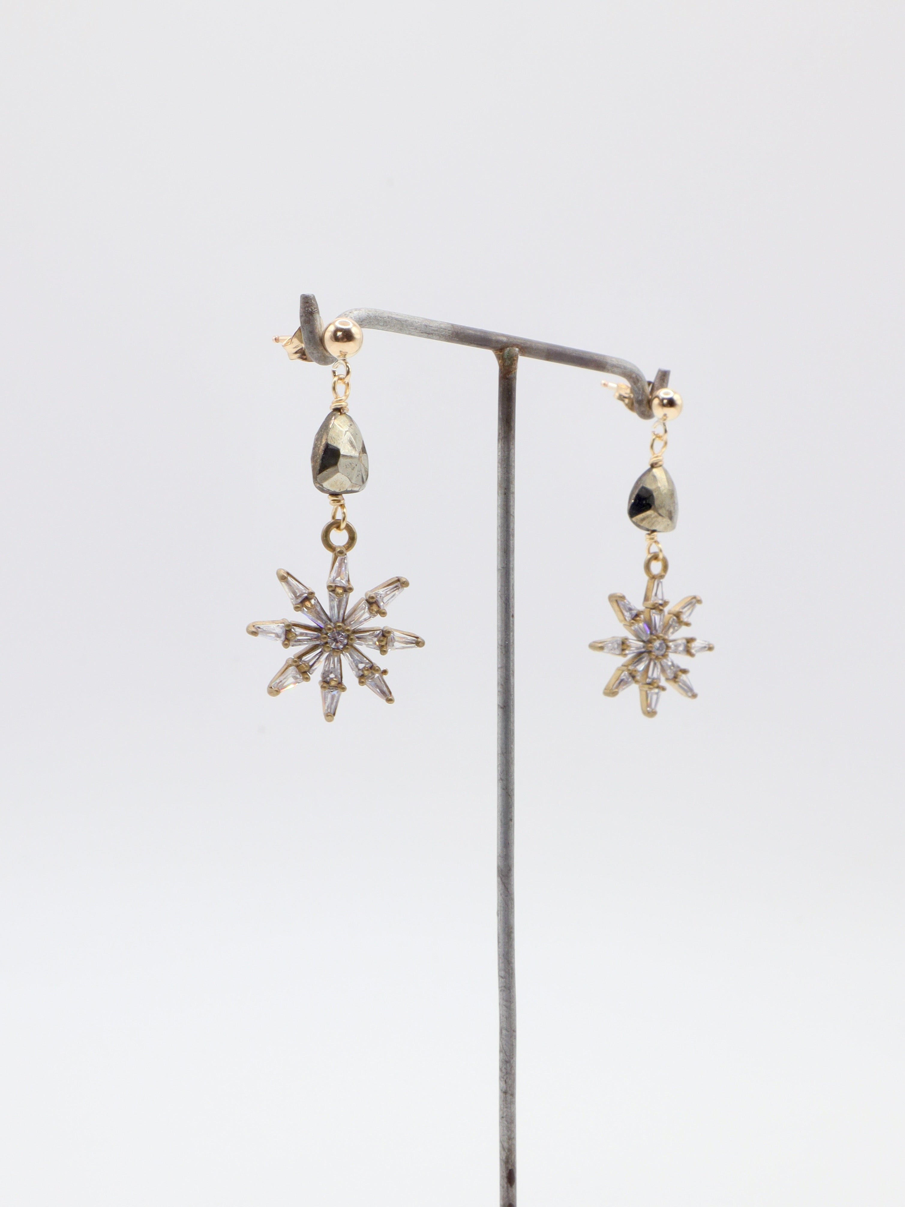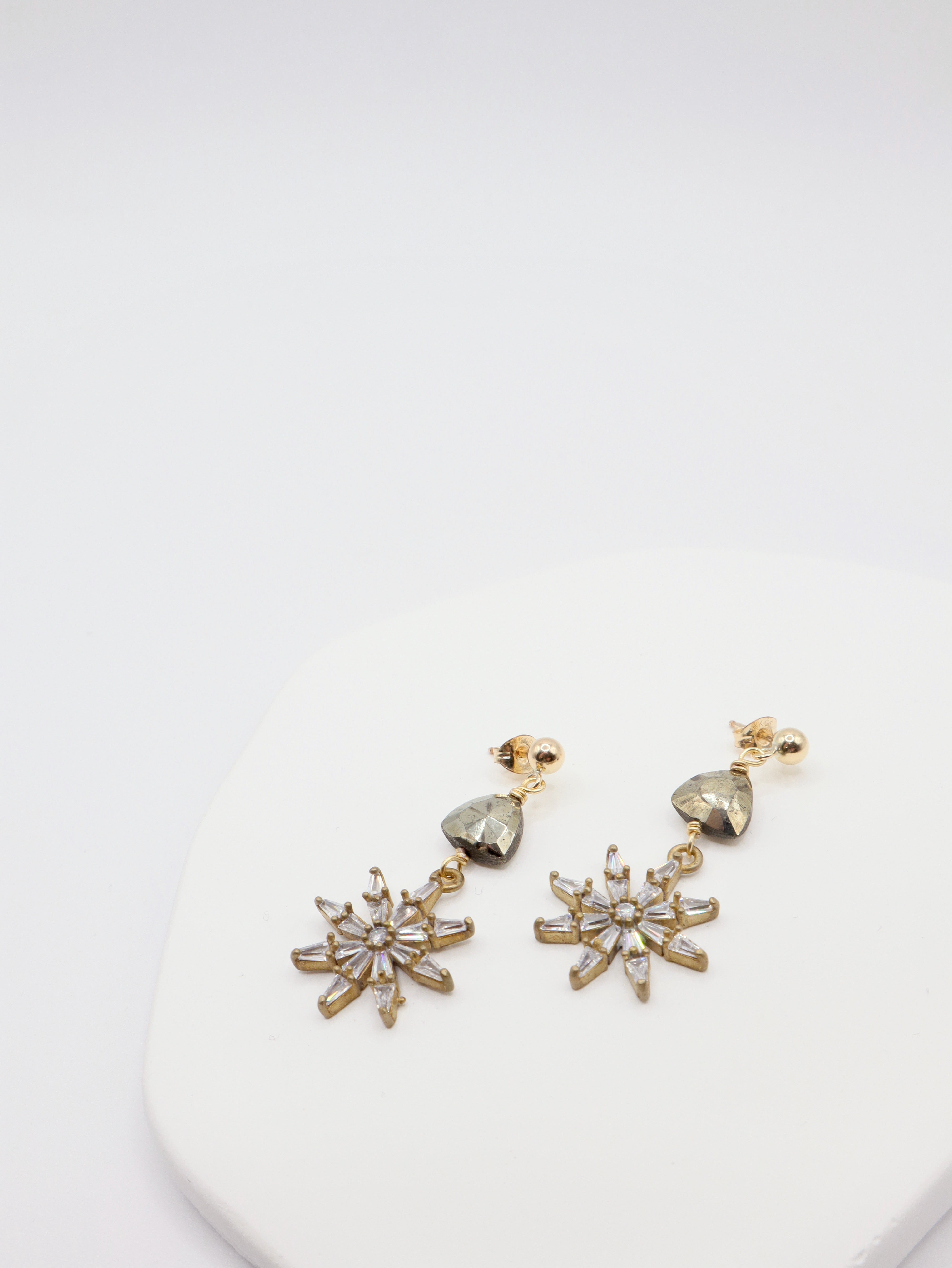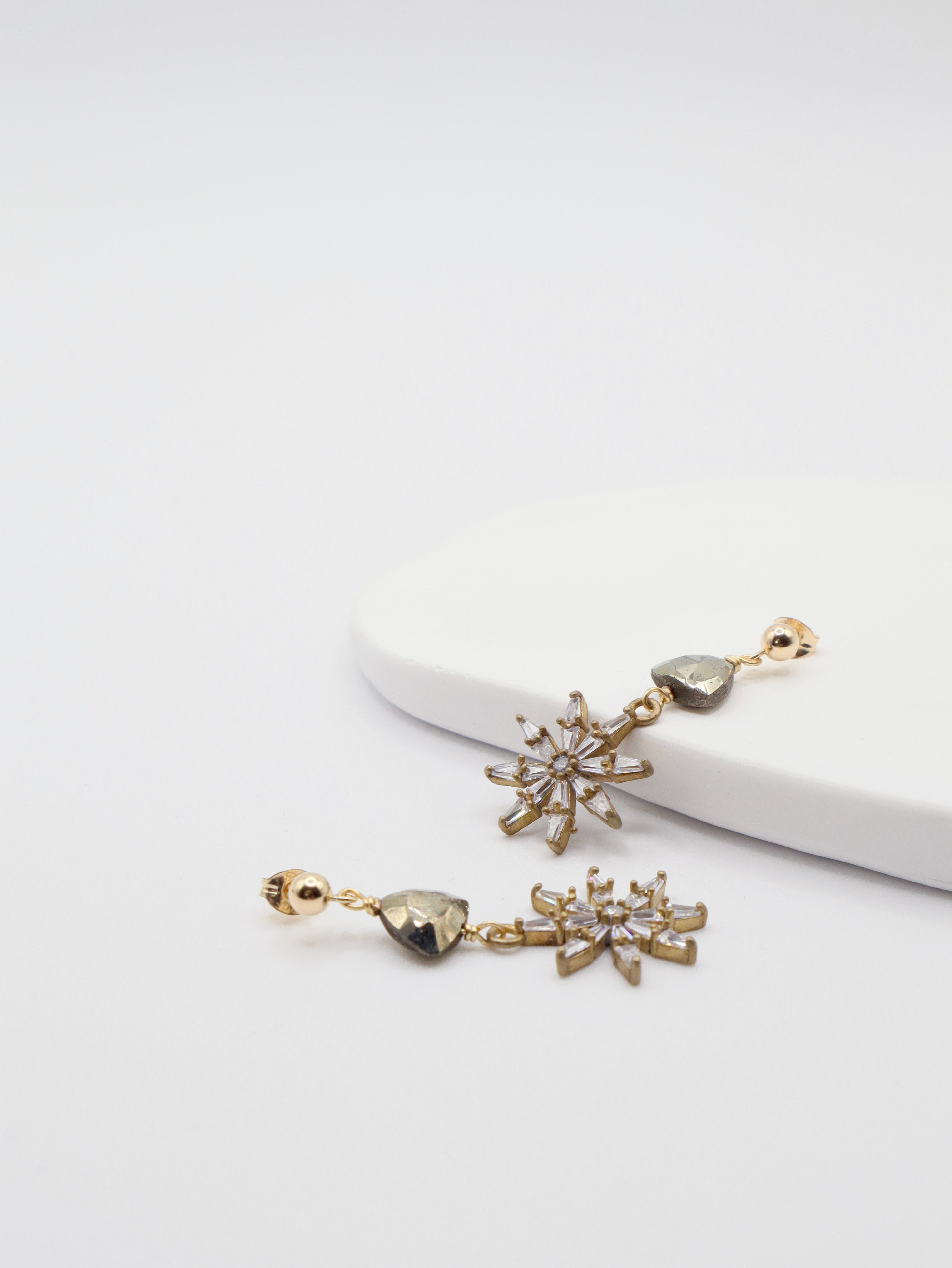 Designed with gold-filled ball studs, the statement earrings have dangling drops of star-shaped rhinestones that glimmer beautifully under the light.