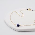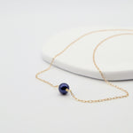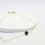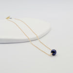 This minimalist necklace highlights a single midnight blue pearl, elegantly suspended on a fine gold-filled chain.