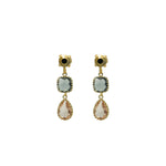 Adorned with bronze studs, the drop-style earrings cascade down to smoke stones and peach-hued teardrops.