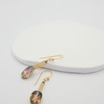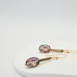 The Lina Earrings are a minimal yet radiant design — combining faceted glass teardrops in iridescent tones with sleek gold bars and delicate hooks.