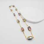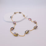 Golden and iridescent glass beads are joined by sleek gold box chain links, creating a look that flows like melody and catches the light from every angle.